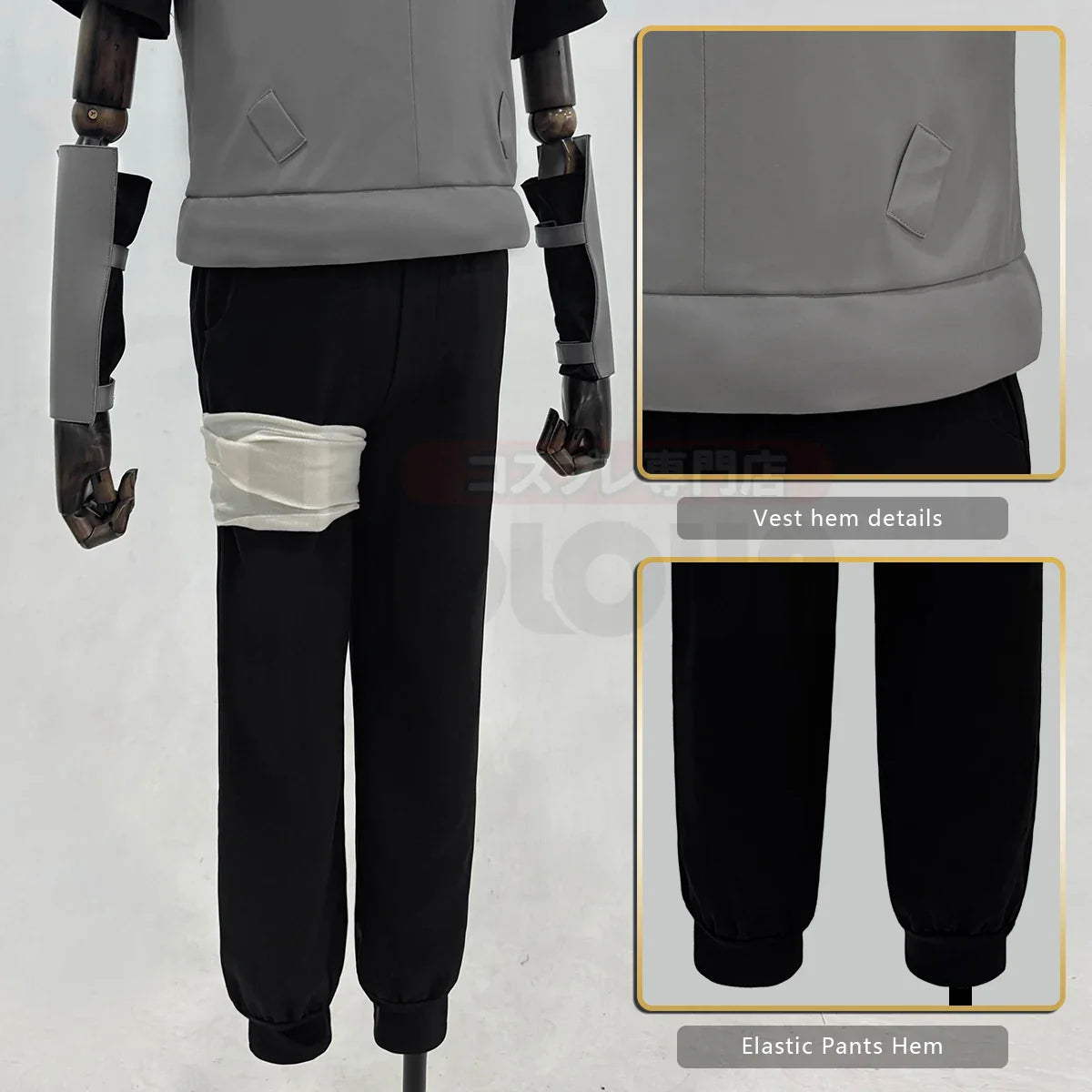 Includes Itachi’s signature faux leather vest, short sleeve T-shirt, pants, and bandages
