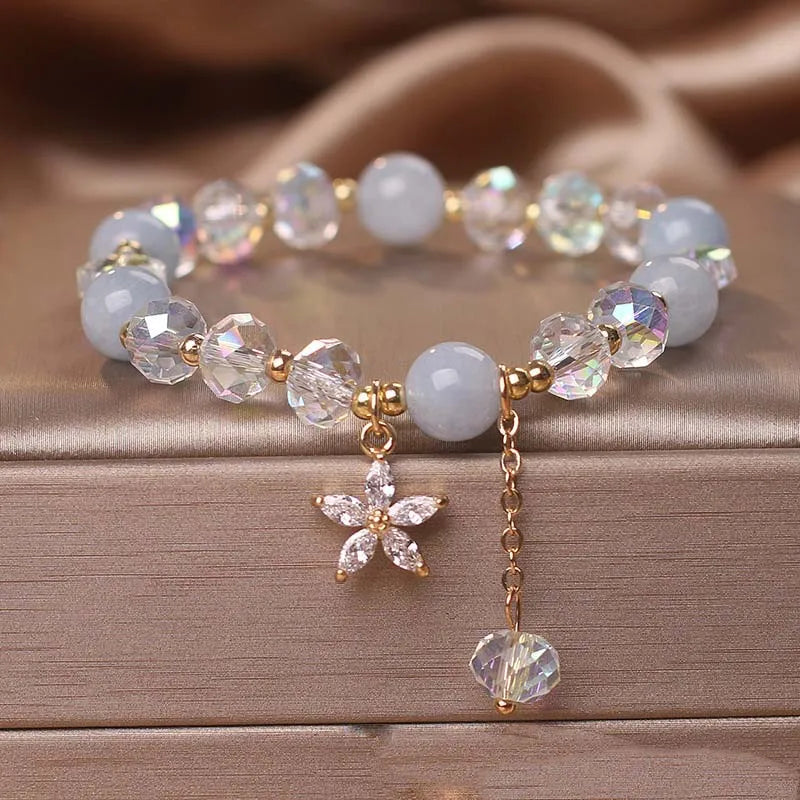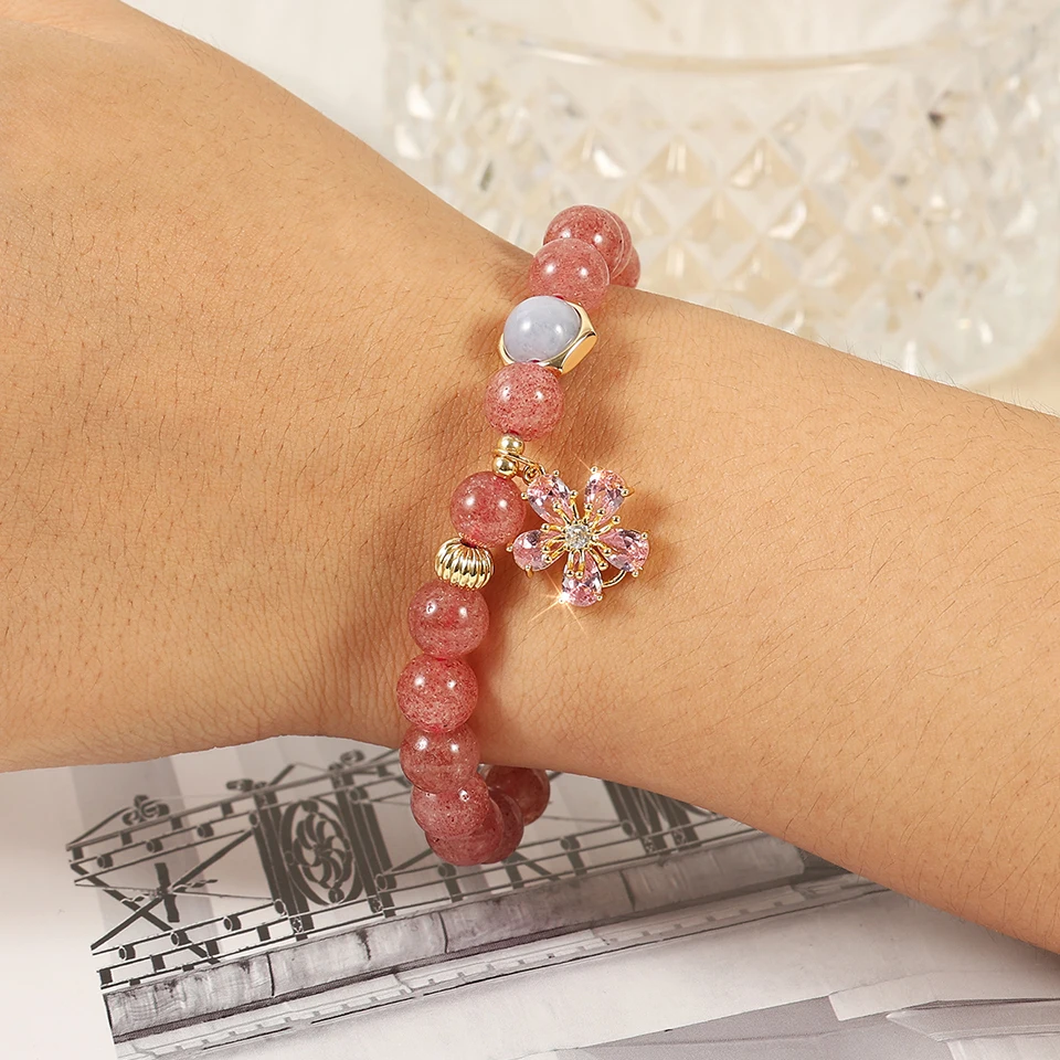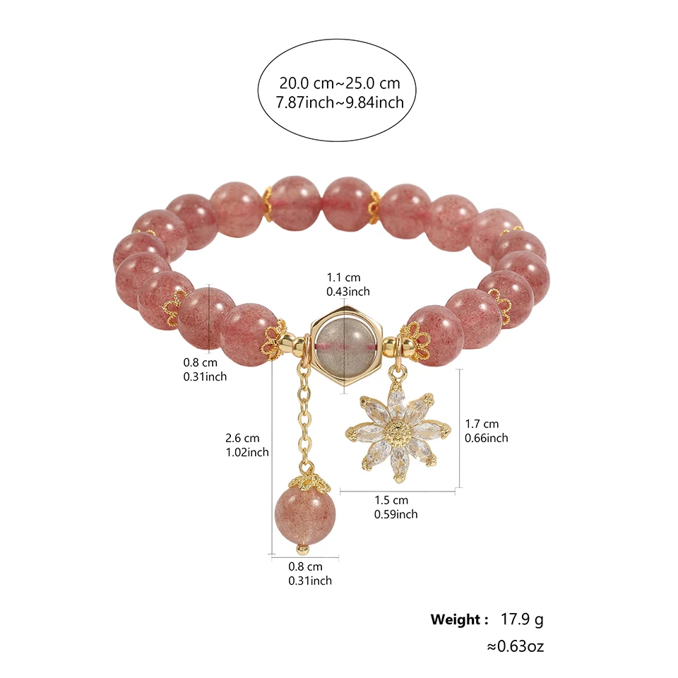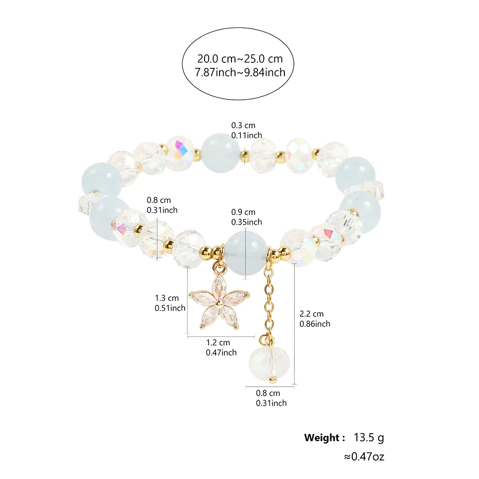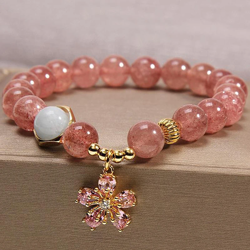 💖 Zakol Cute Romantic Natural Crystal Stone Ball Strand Bracelets – Dopamine Crystal Beaded Wristlet for Women & Girls 🎀✨