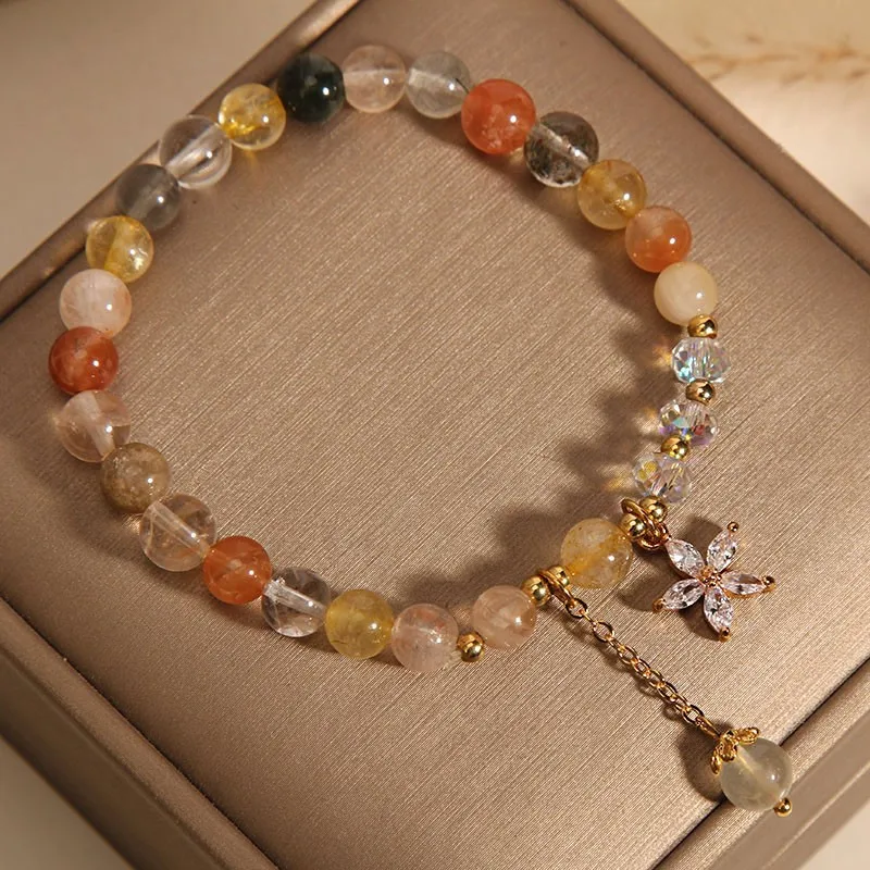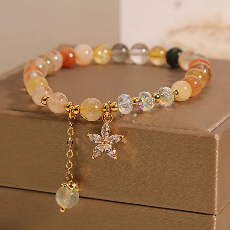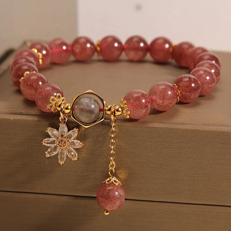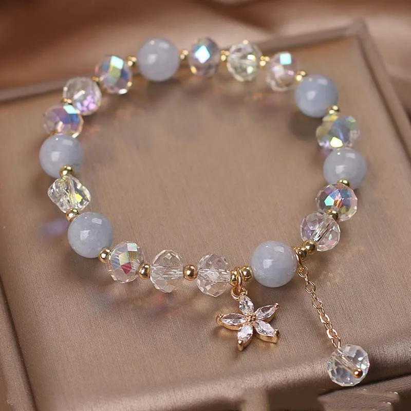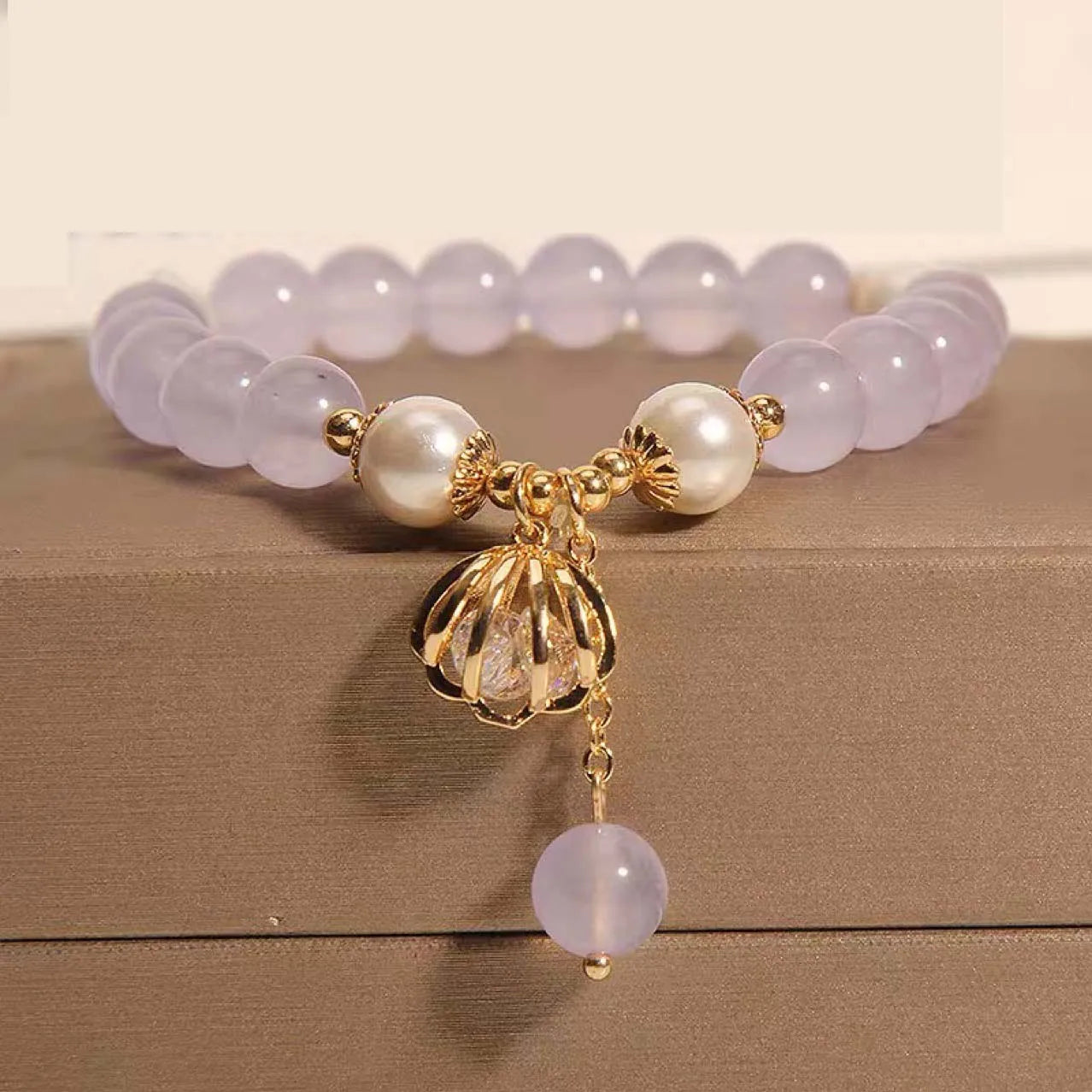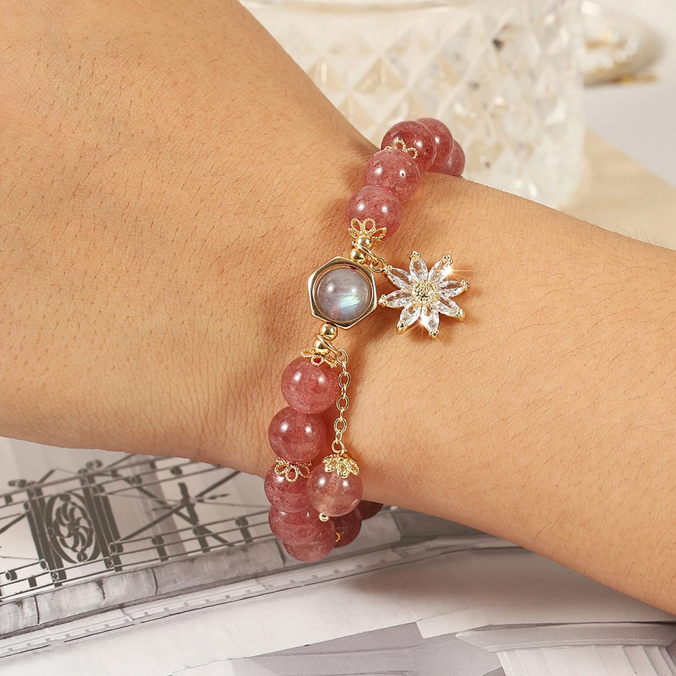 💖 Zakol Cute Romantic Natural Crystal Stone Ball Strand Bracelets – Dopamine Crystal Beaded Wristlet for Women & Girls 🎀✨
