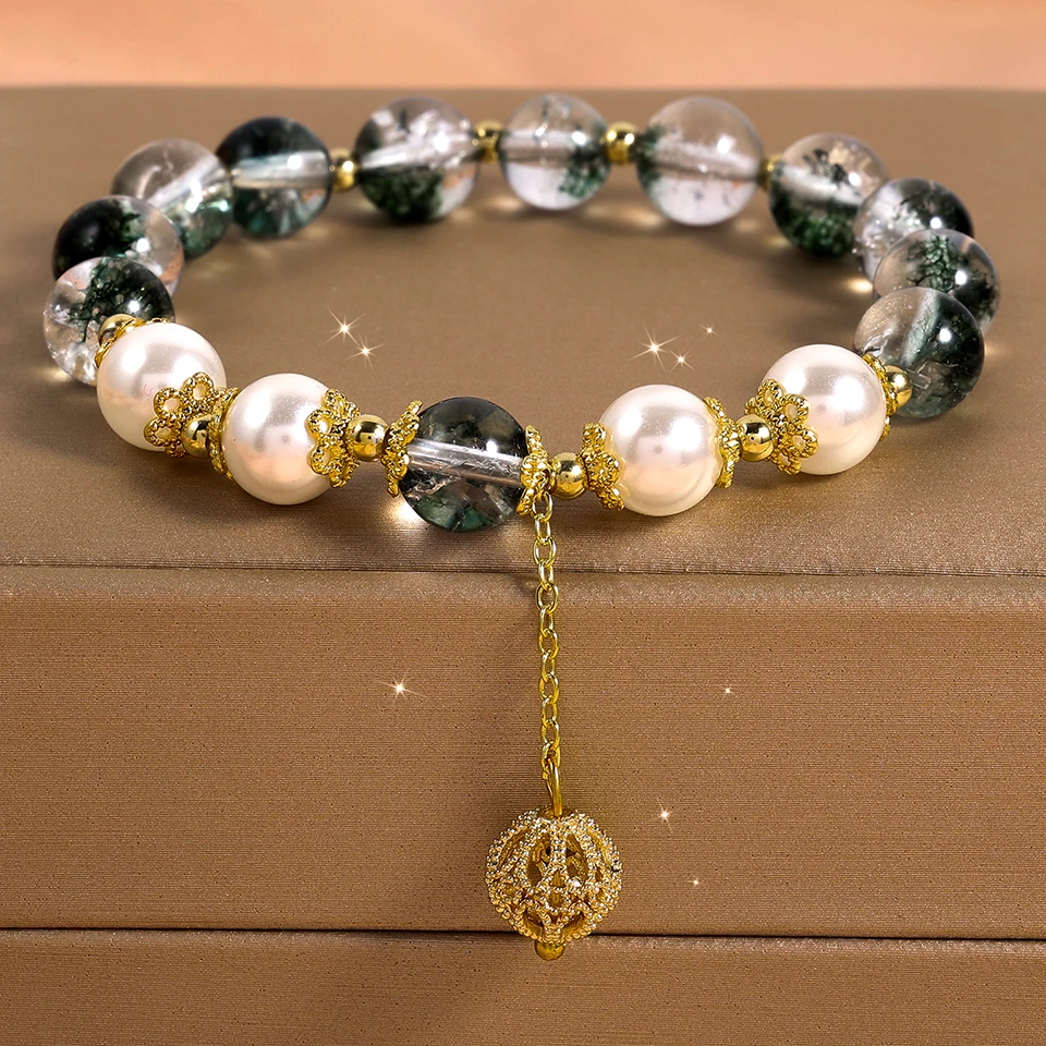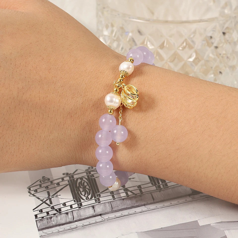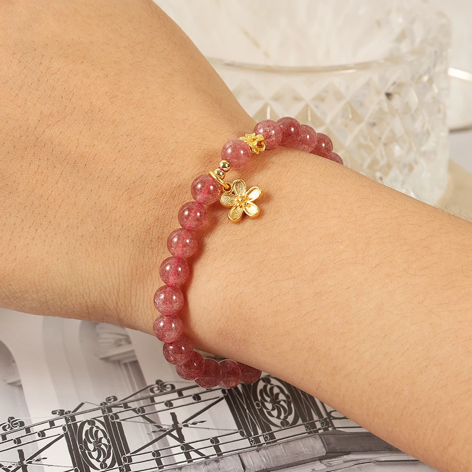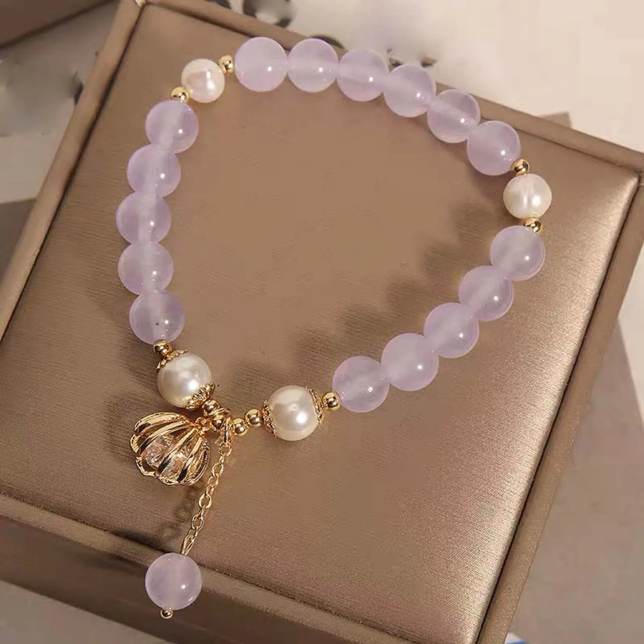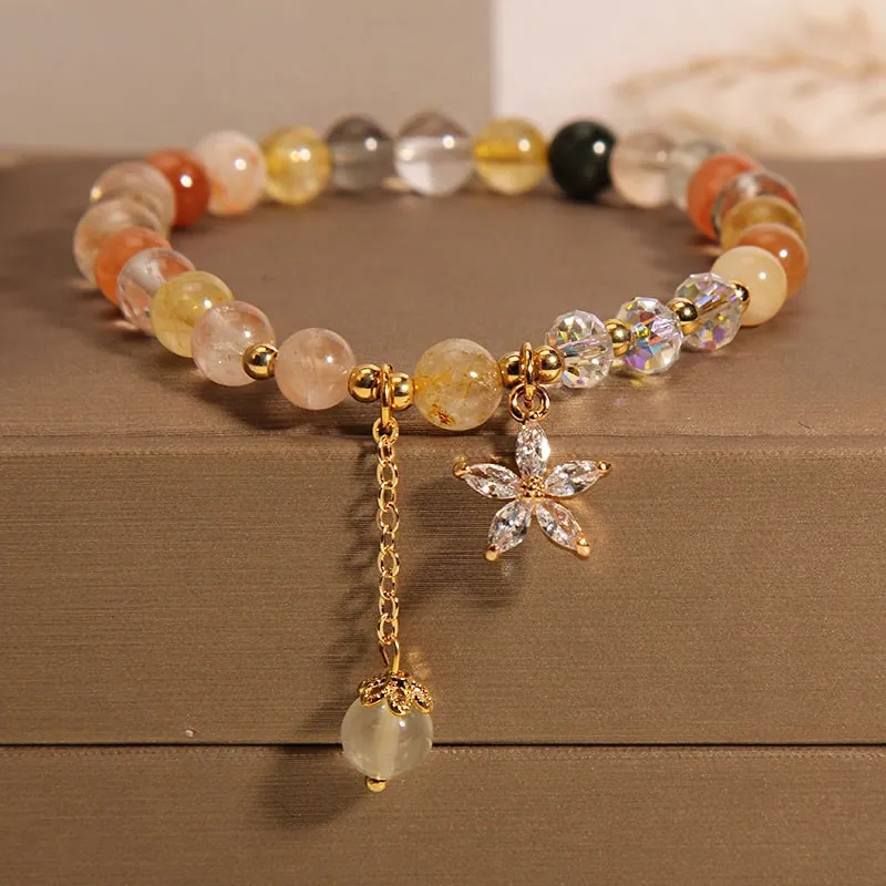 💖 Zakol Cute Romantic Natural Crystal Stone Ball Strand Bracelets – Dopamine Crystal Beaded Wristlet for Women & Girls 🎀✨
