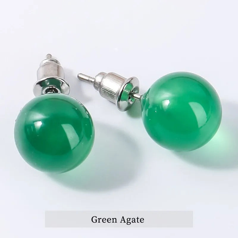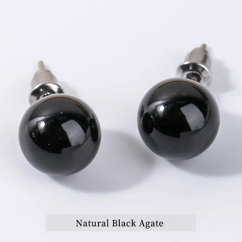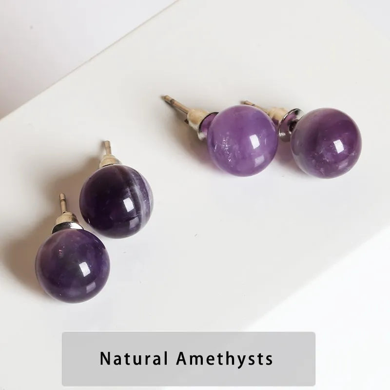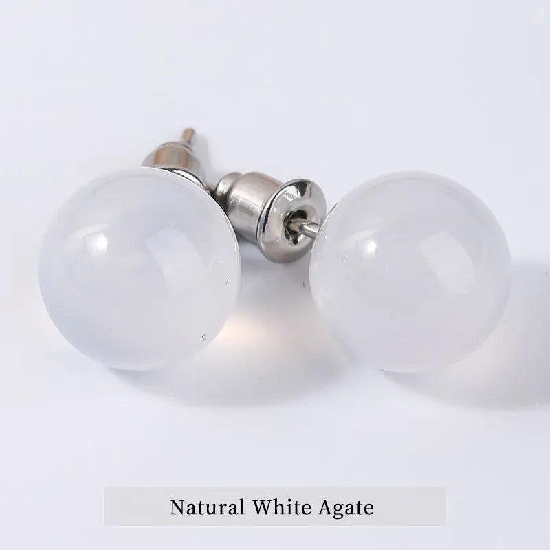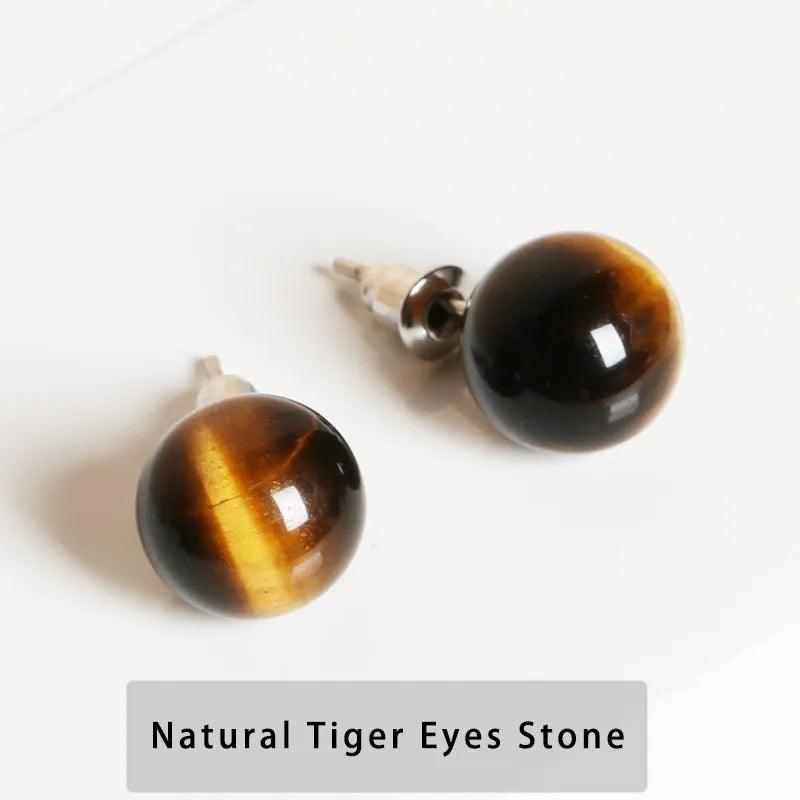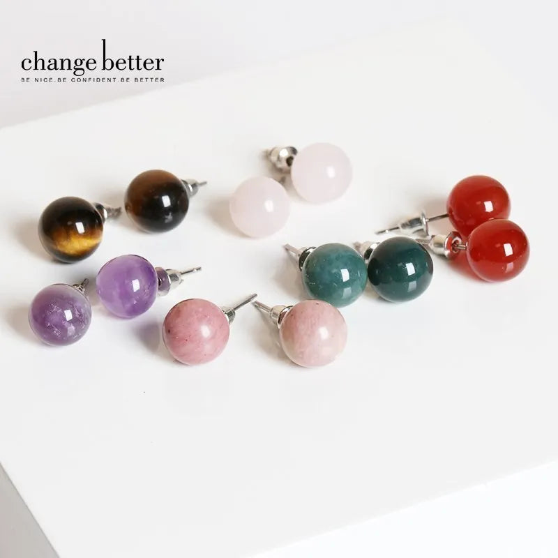 Change Better Natural Stone Amethyst Tiger Eye Agate Round Beads Earring Women Fashion Simple Stainless Steel Crystal Ear Studs