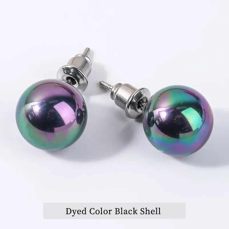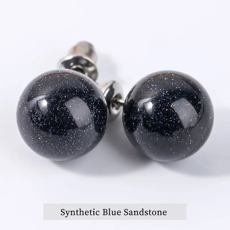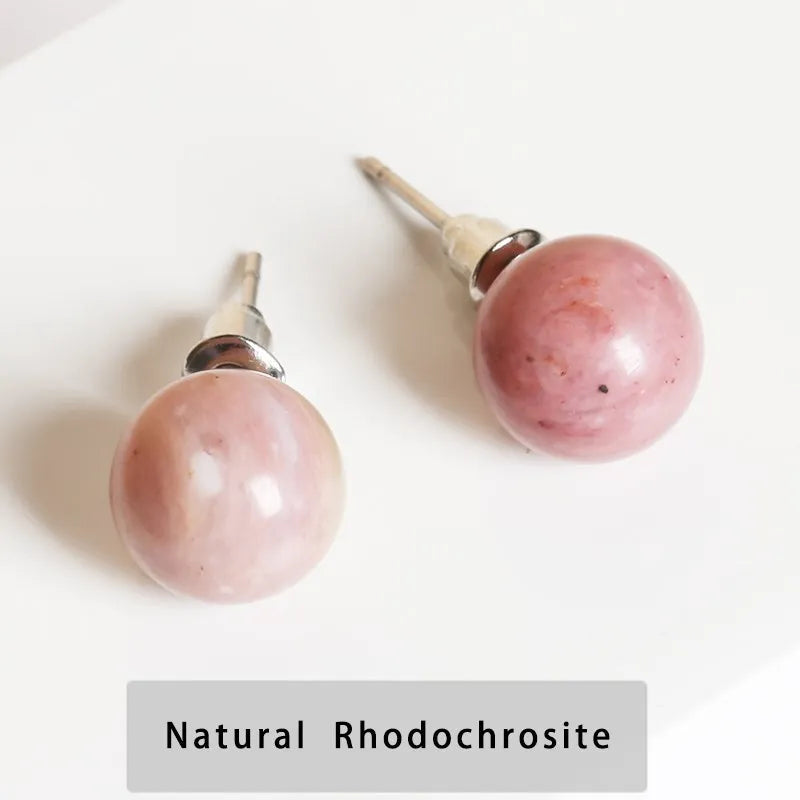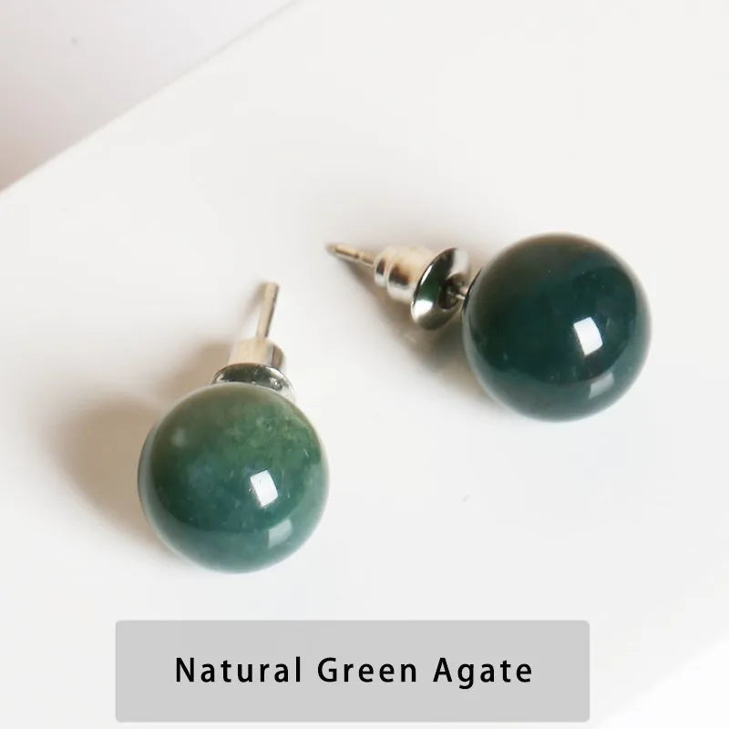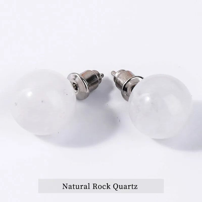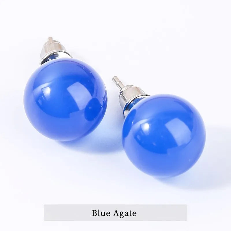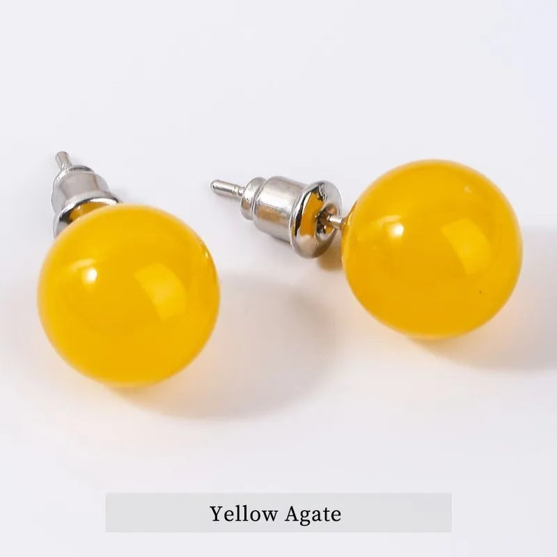 Change Better Natural Stone Amethyst Tiger Eye Agate Round Beads Earring Women Fashion Simple Stainless Steel Crystal Ear Studs