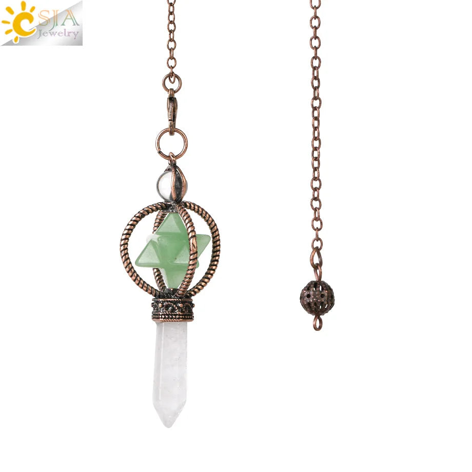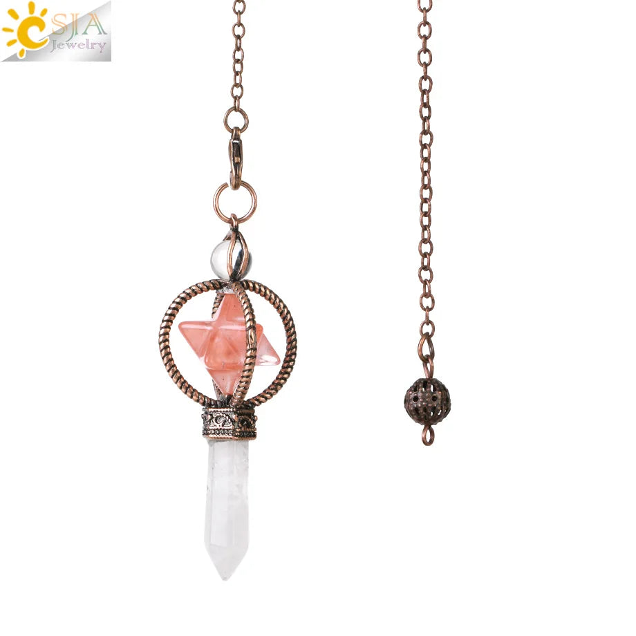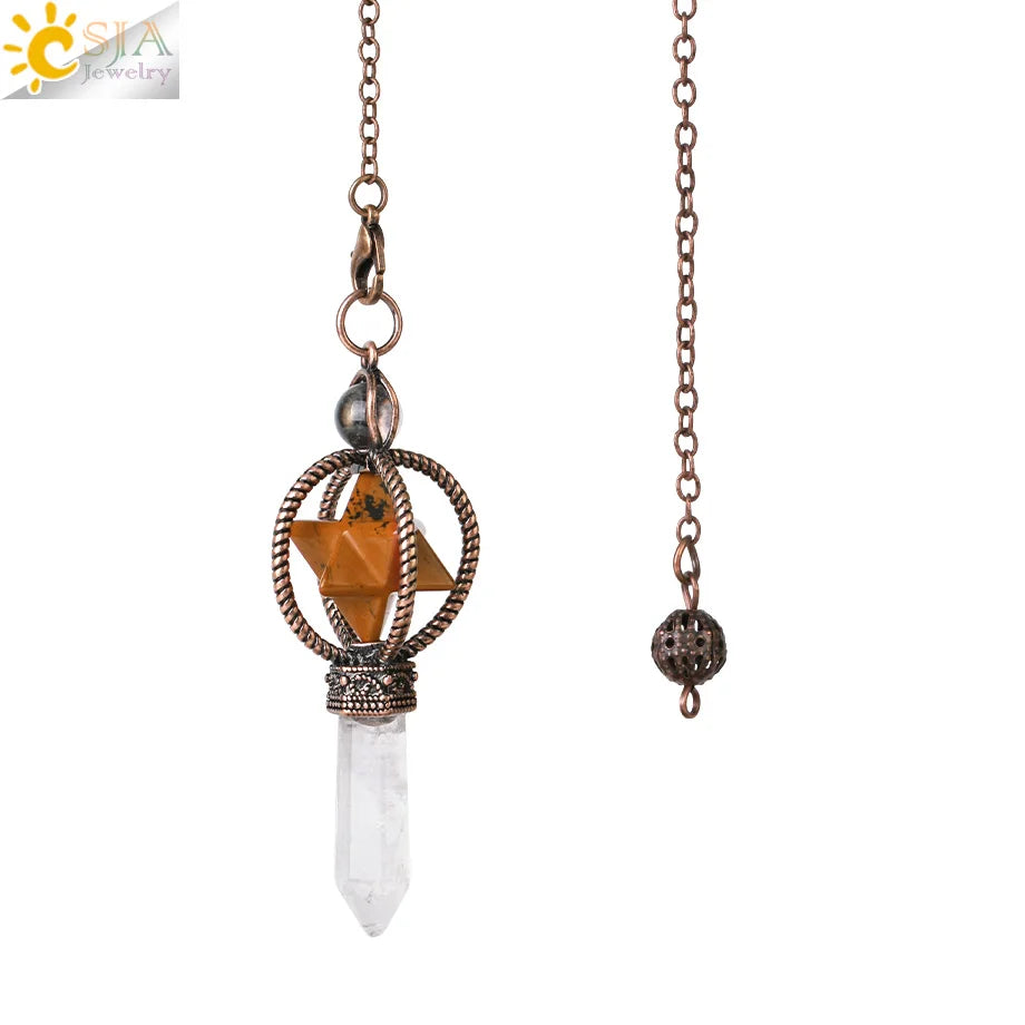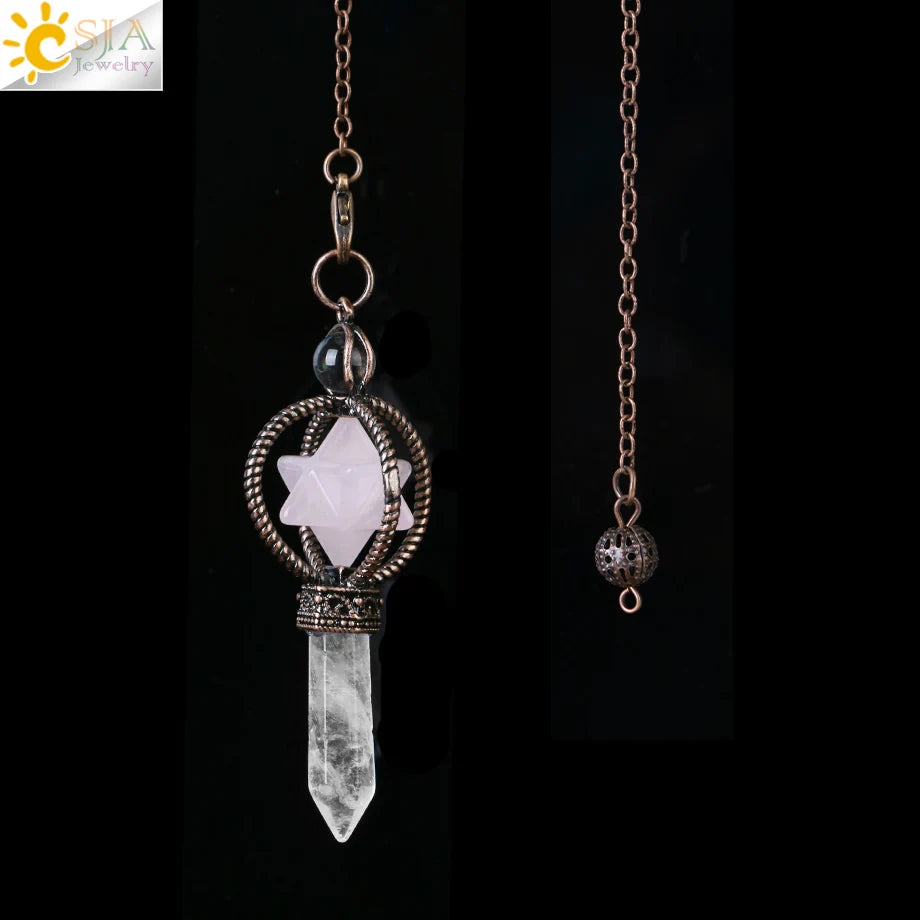 Channel higher wisdom and energetic balance with the CSJA Esotericism Crystal Pendulum, featuring a sacred Merkaba-shaped Clear Quartz pendant and elegant red bronze accents. A powerful tool for dowsing, divination, and chakra alignment.