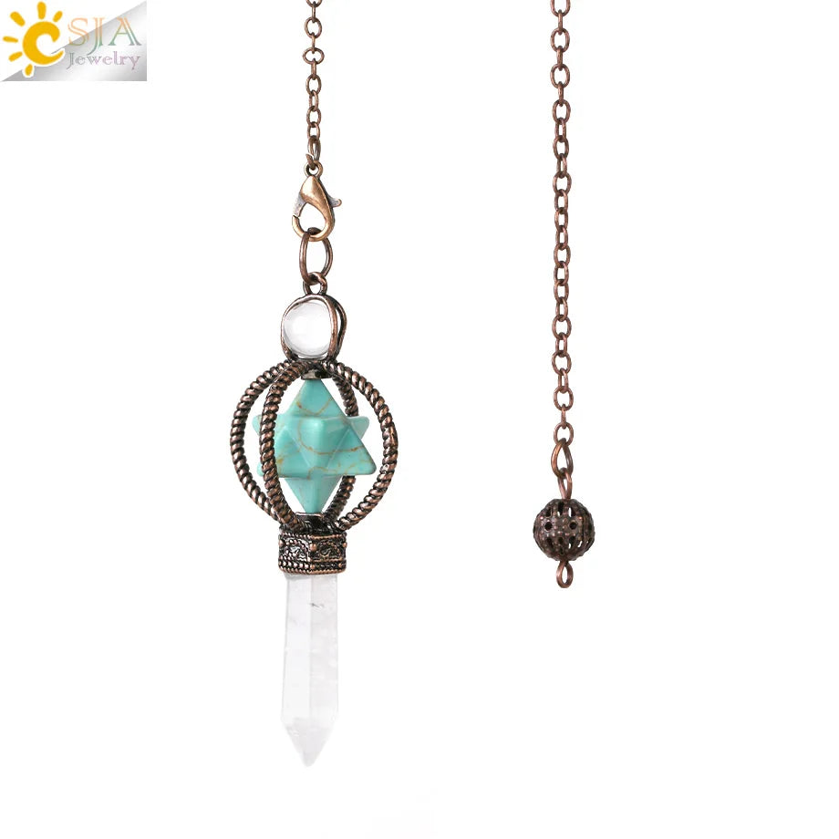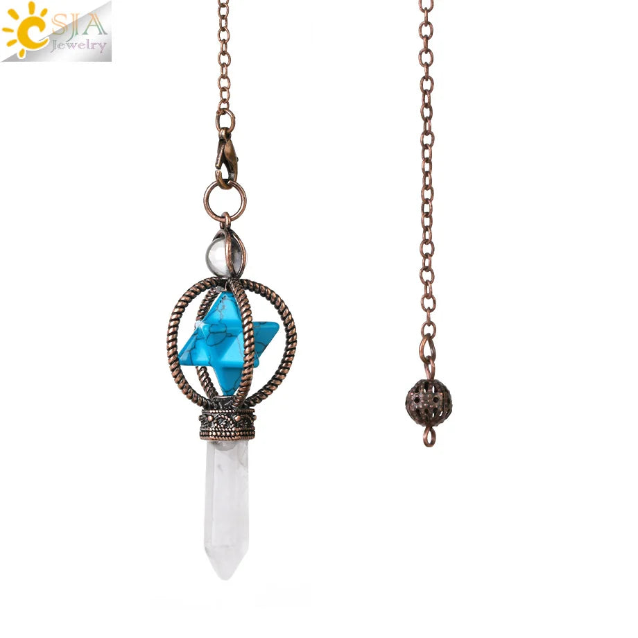 CSJA Esotericism Crystal Pendulum – Merkaba Clear Quartz Pendant for Dowsing & Divination