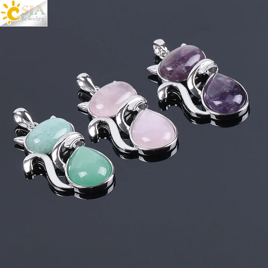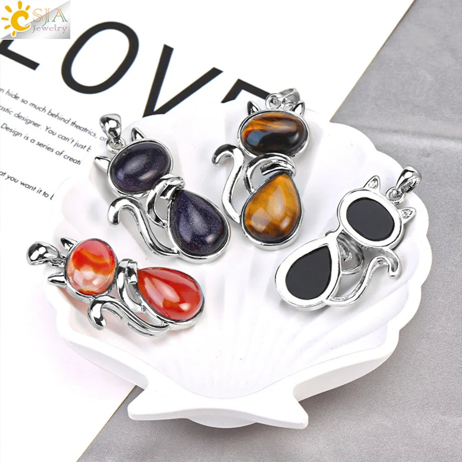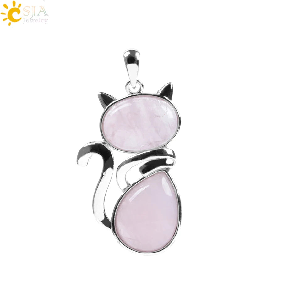 Natural Stone Cat Pendant – Cute Crystal Suspension Necklace for Girls