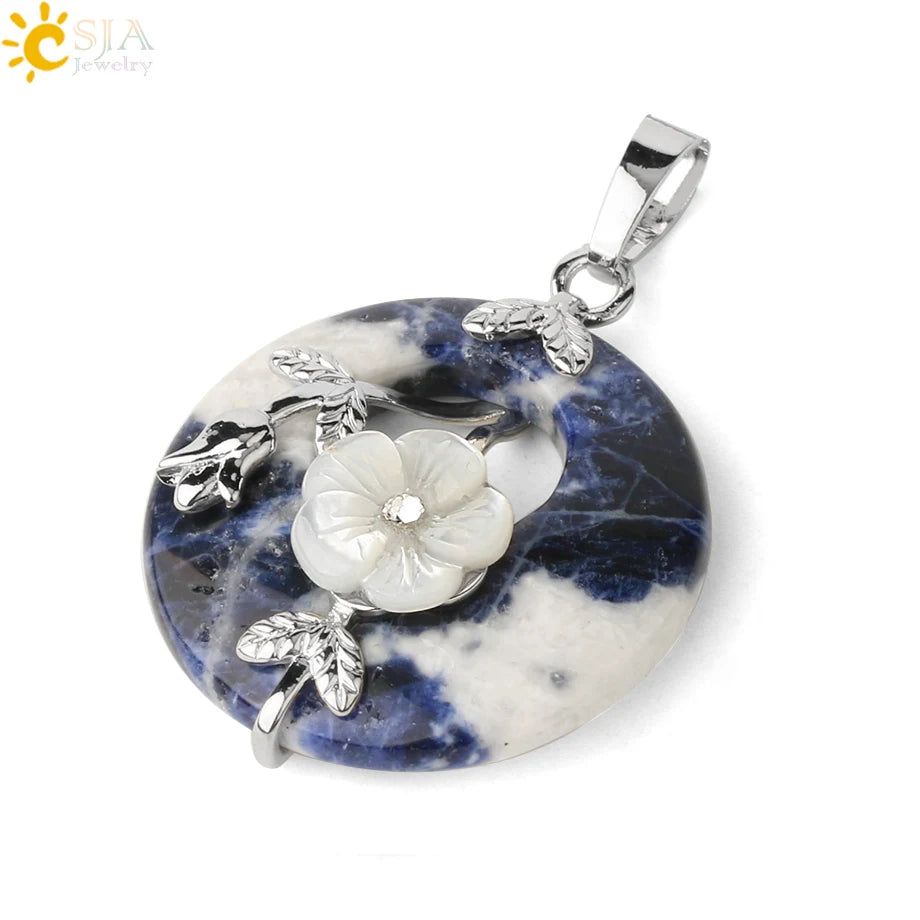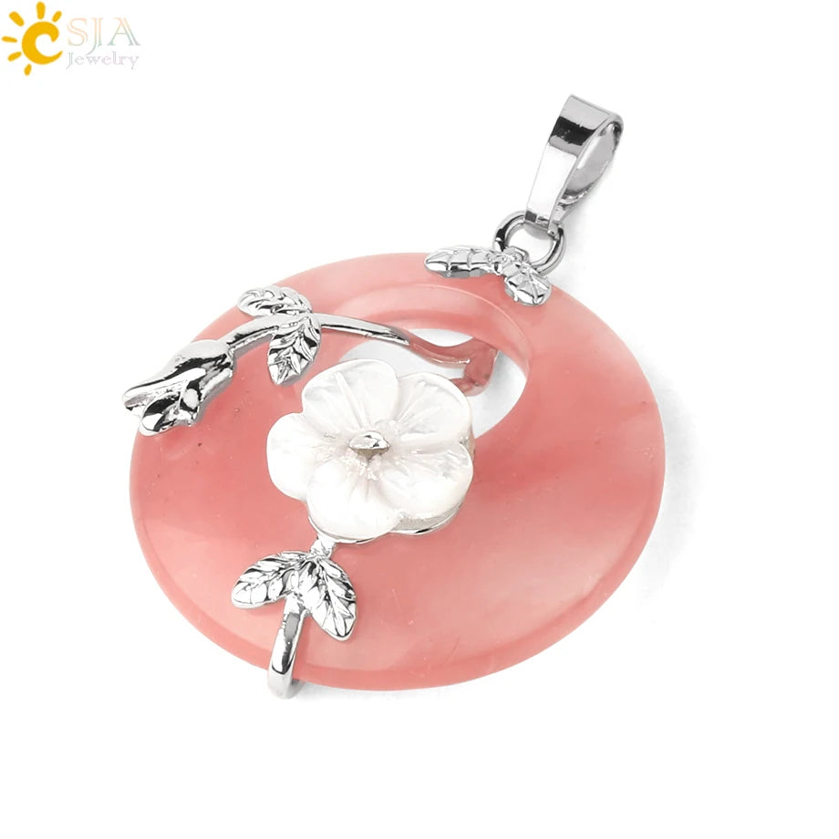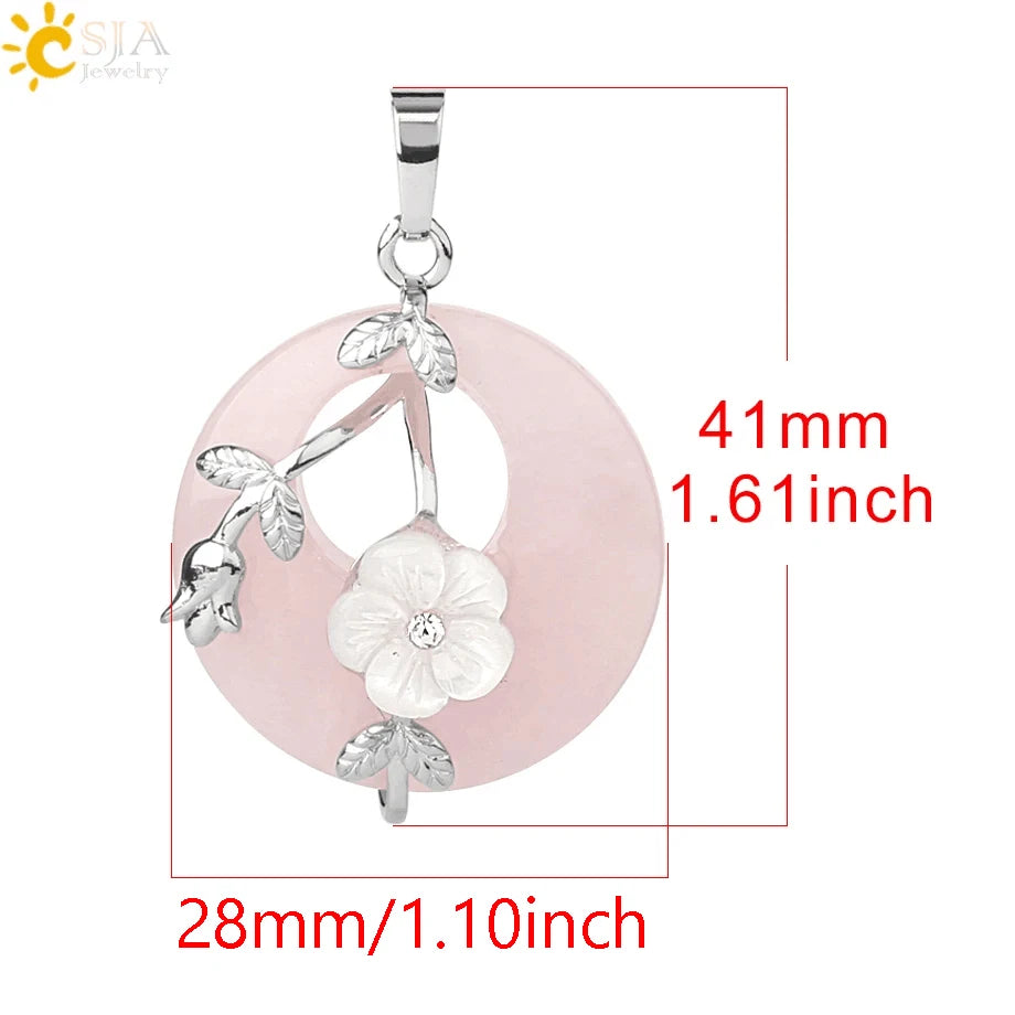Natural Stone Donut Pendant – Round Flower & Leaf Design for Reiki Healing Jewelry