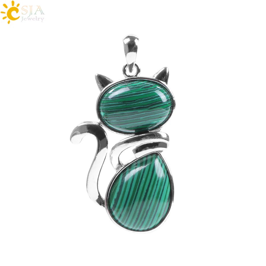 Natural Stone Cat Pendant – Cute Crystal Necklace for Girls & Cat Lovers