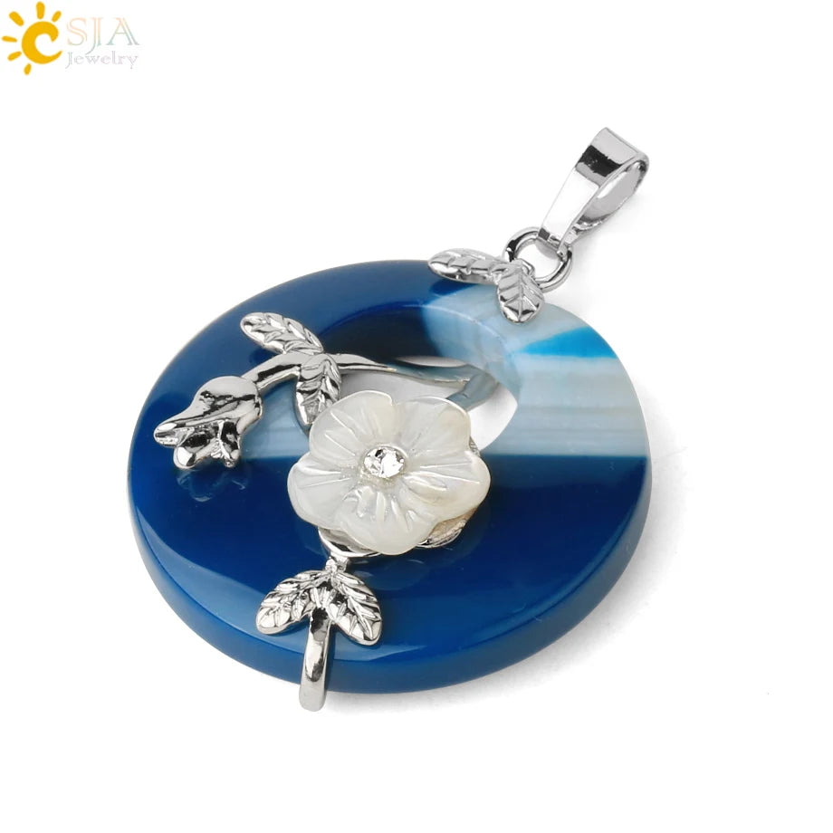 Genuine natural stones including Amethyst, Rose Pink Quartz, Black Onyx, and more โ€“ finely polished into donut-shaped pendants.
