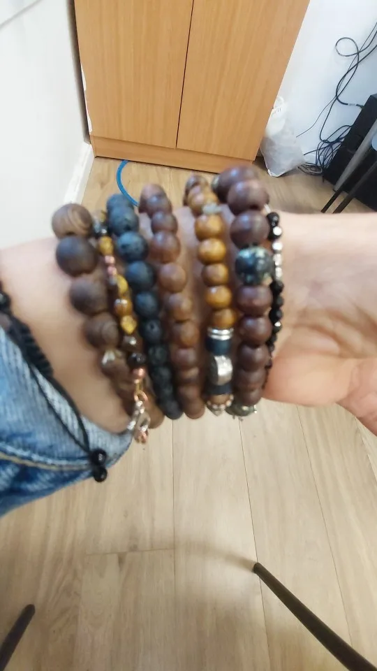 Natural obsidian and tiger eye volcanic stones, carefully crafted into elastic bead bracelets.