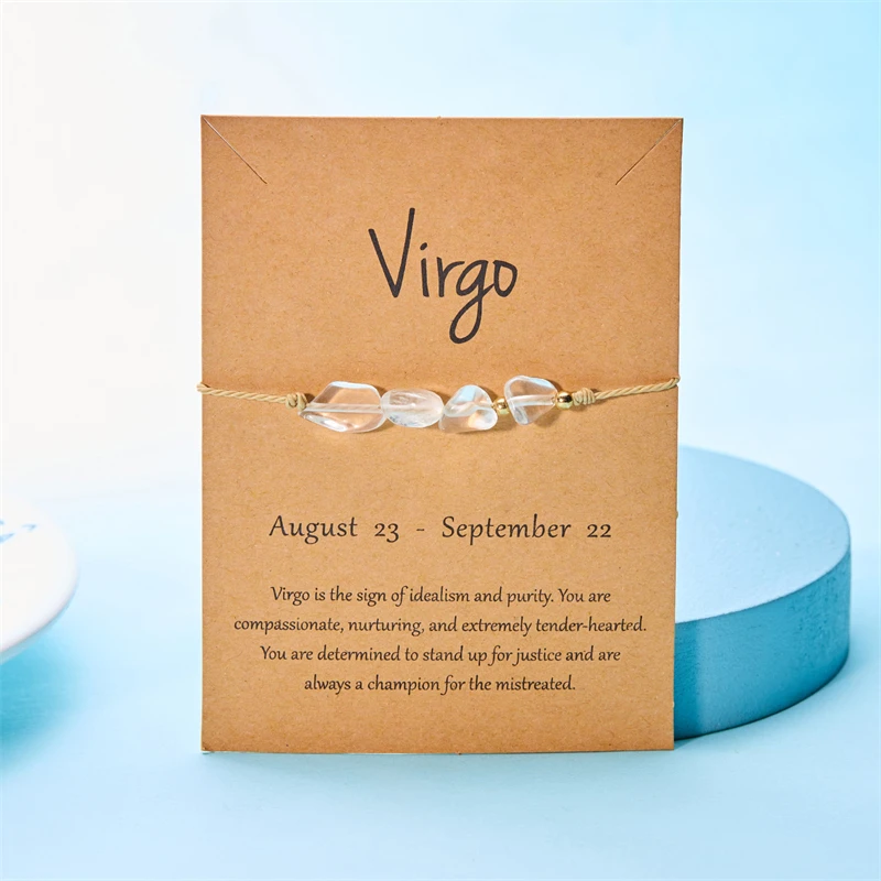 Simple 12 Constellations Colorful Crystals Natural Stone Beads Bracelet for Women Men Handmade Braid Chain Bracelet Jewelry Gift