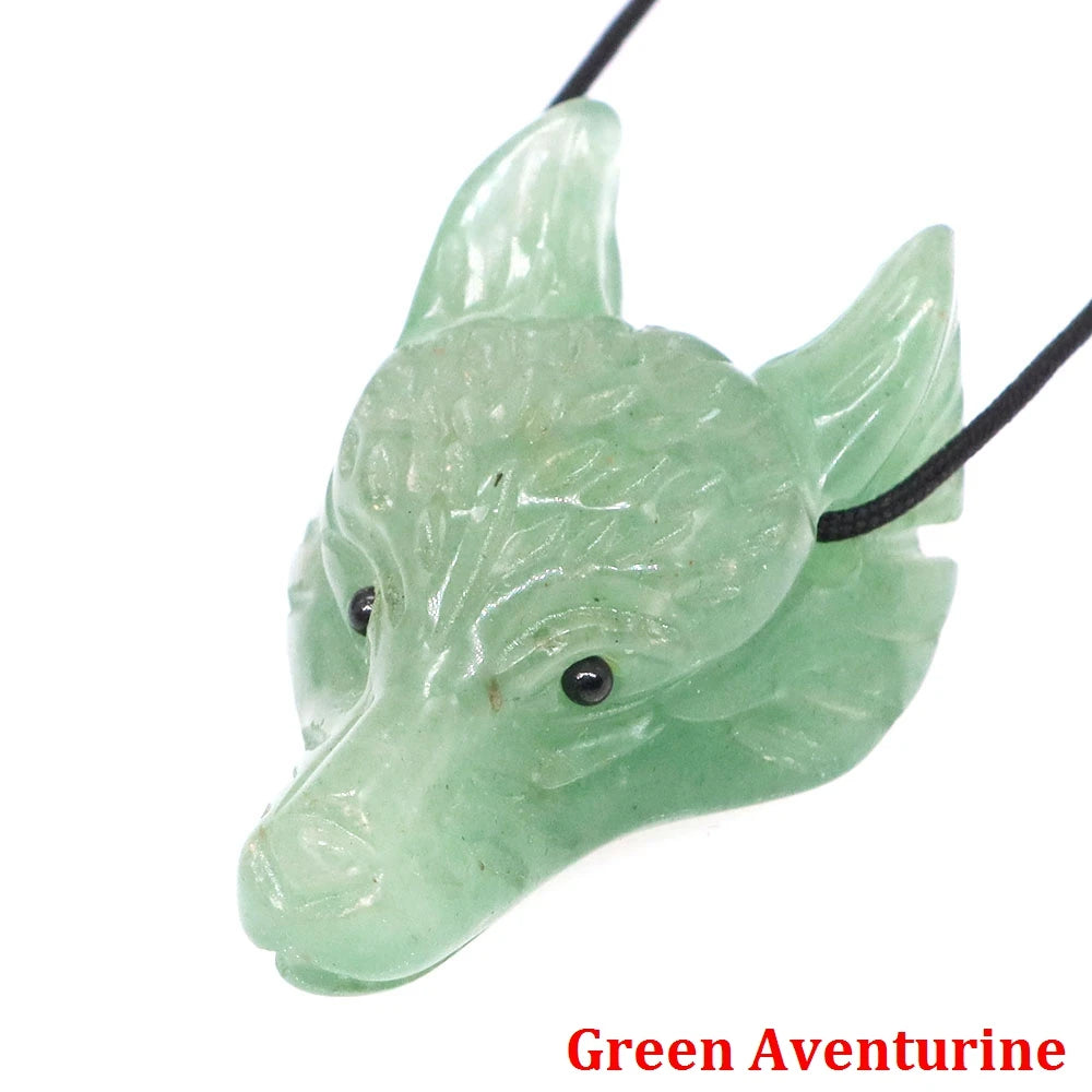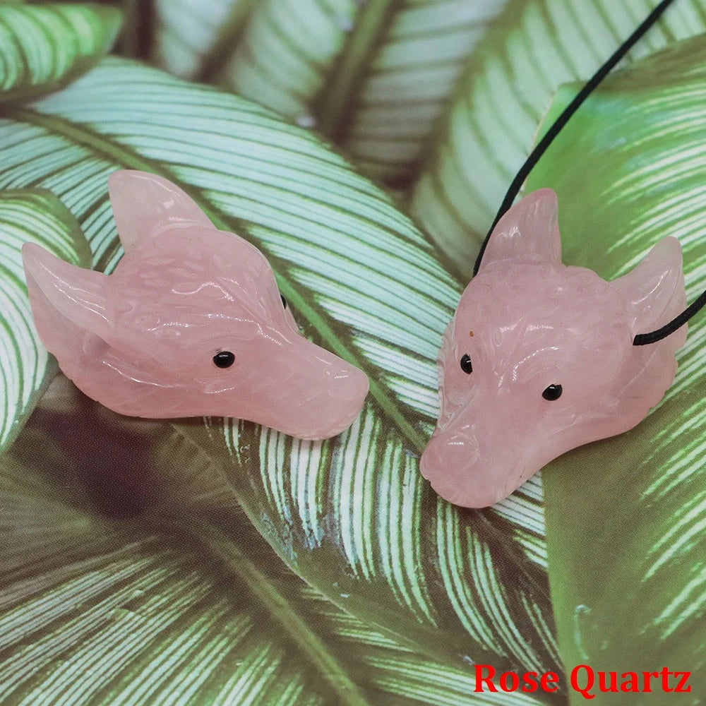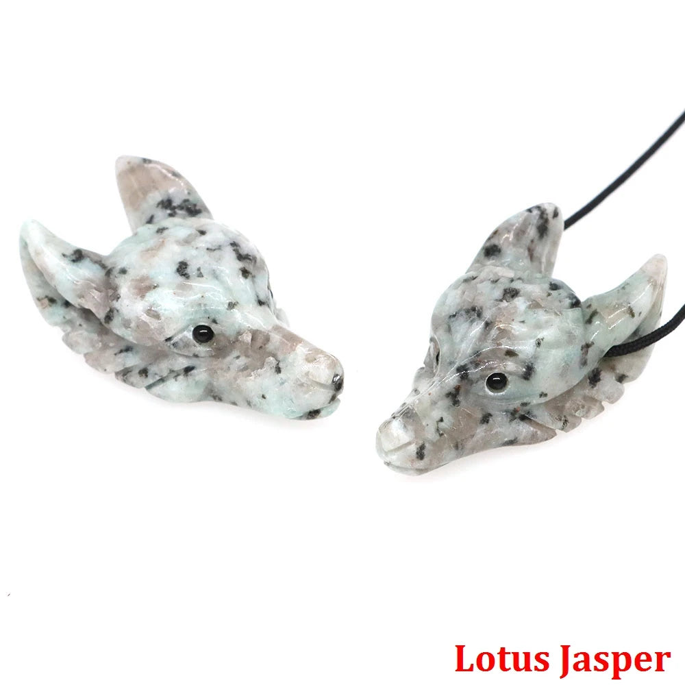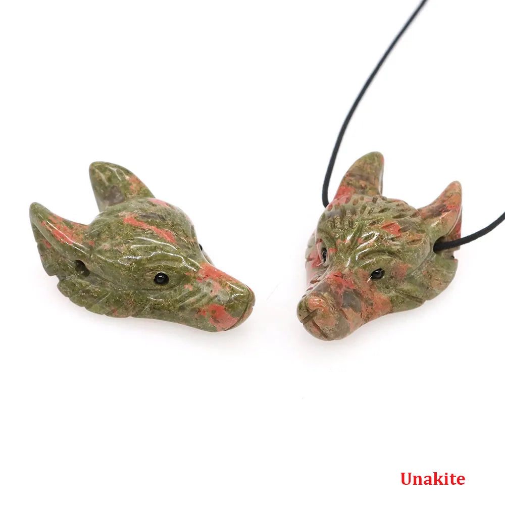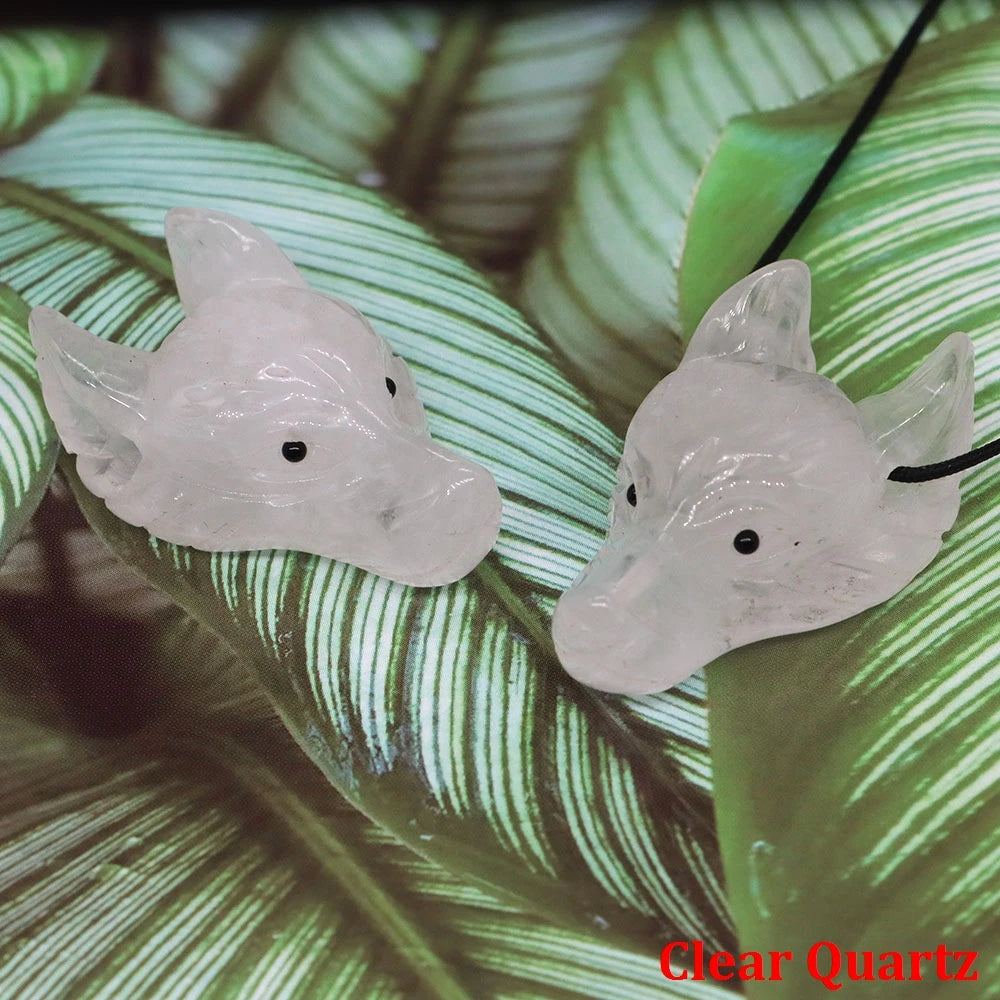 🐺 1.5" Wolf Head Pendant – Hand-Carved Natural Healing Crystal & Reiki Stone Necklace 🪶✨