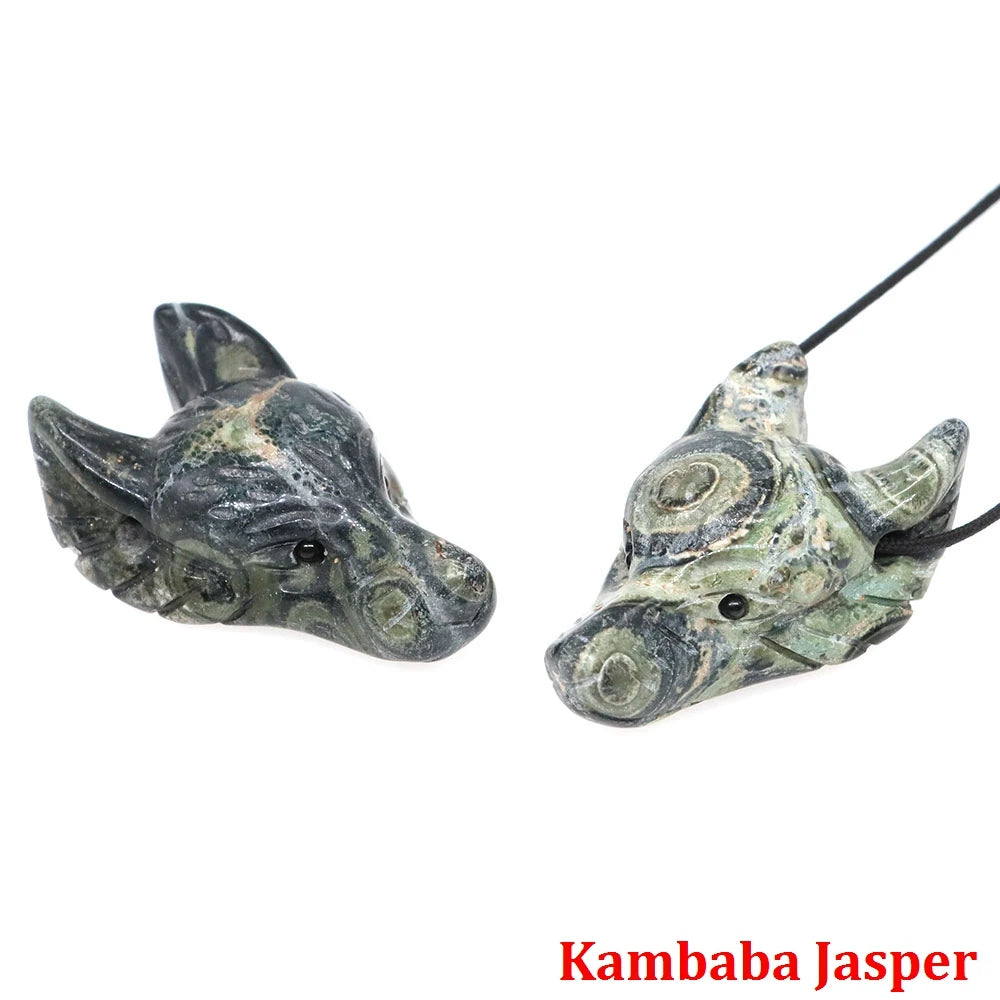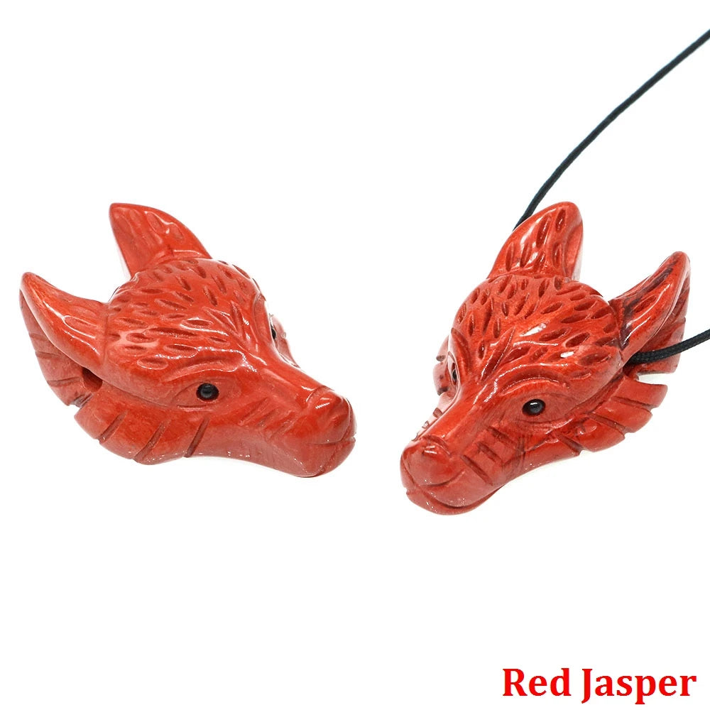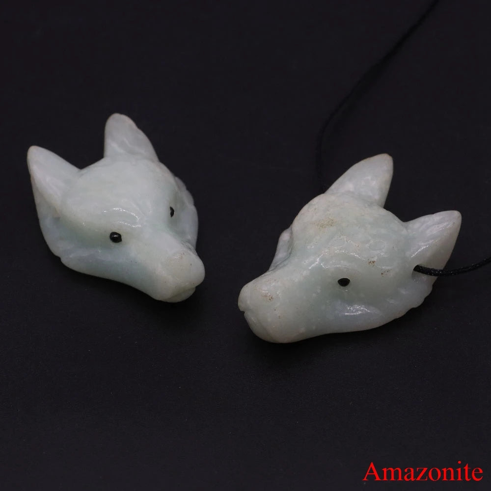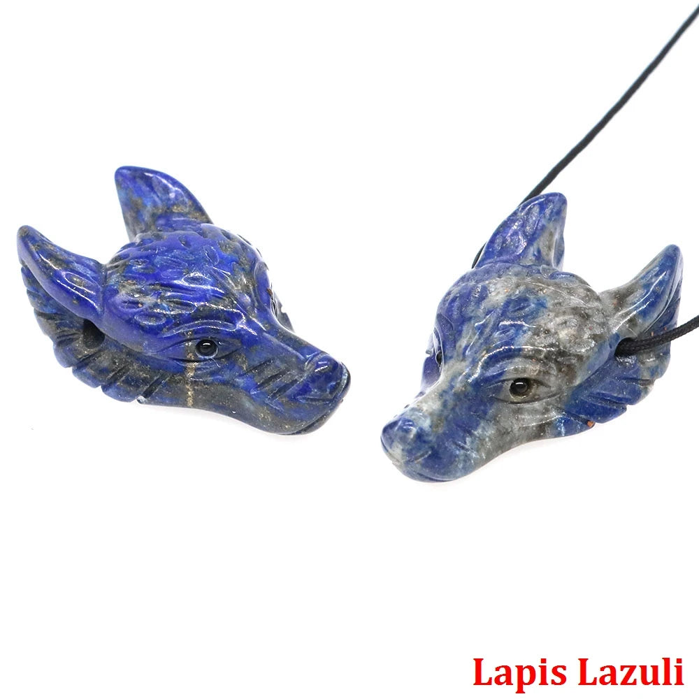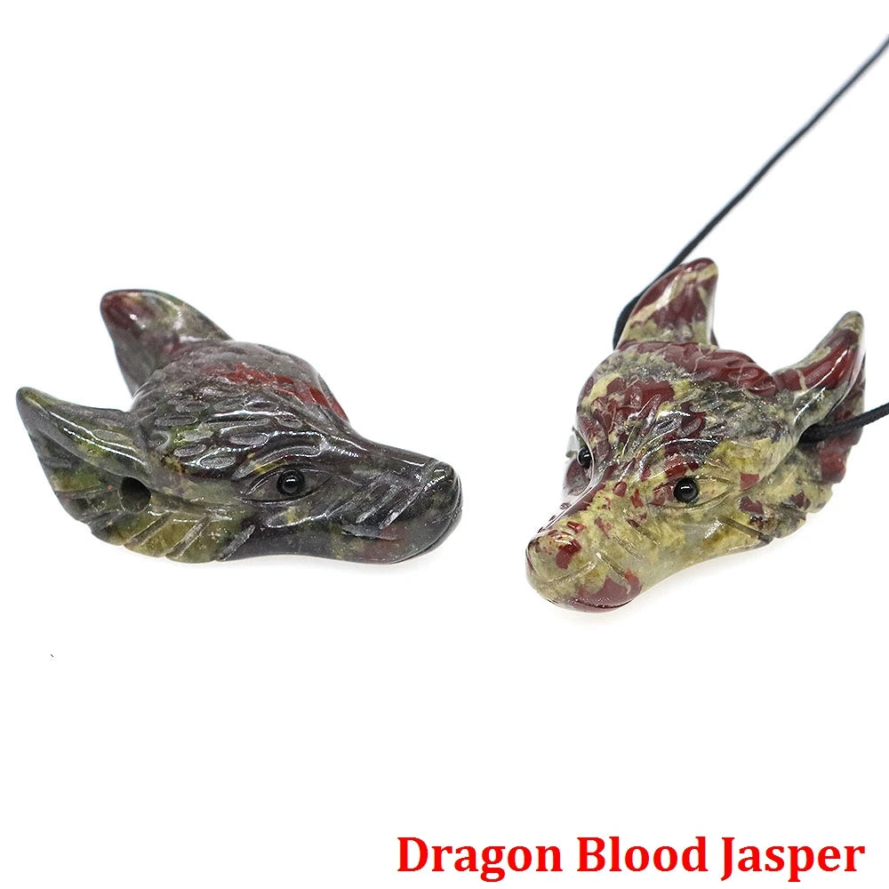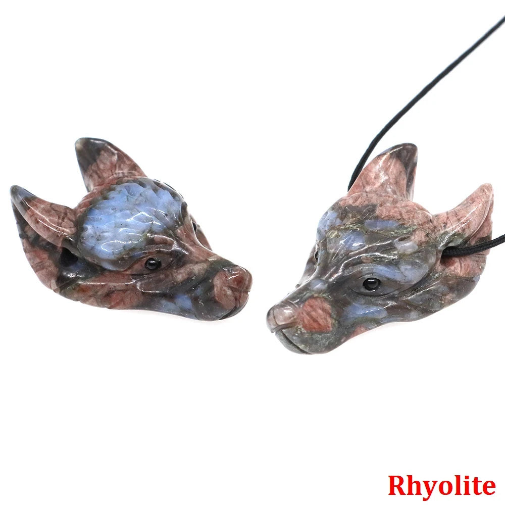 🐺 1.5" Wolf Head Pendant – Hand-Carved Natural Healing Crystal & Reiki Stone Necklace 🪶✨