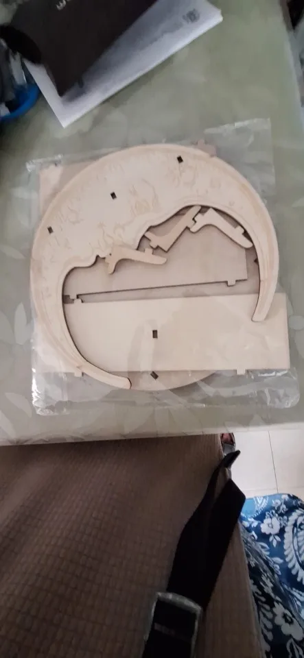 High-quality wood with a sleek black finish, crafted into a round design featuring moon motifs for a mystical touch.