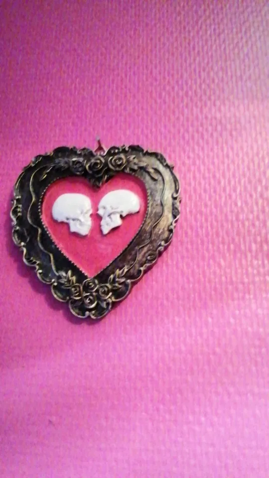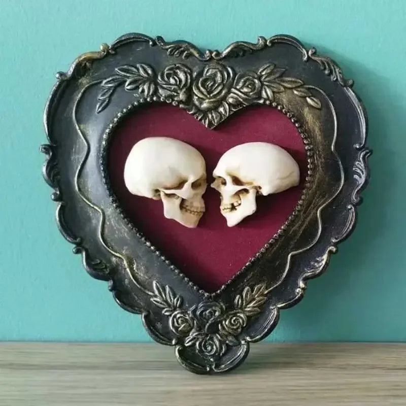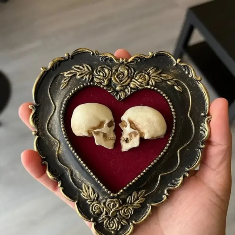 Heart-Shaped True Love Skull Ornament – Framed Miniature Skeleton Decoration for Halloween & Gothic Decor