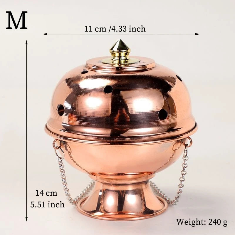 Multifunctional Hanging Incense Burner – Red Copper Engraved Stupa Aromatherapy Stove