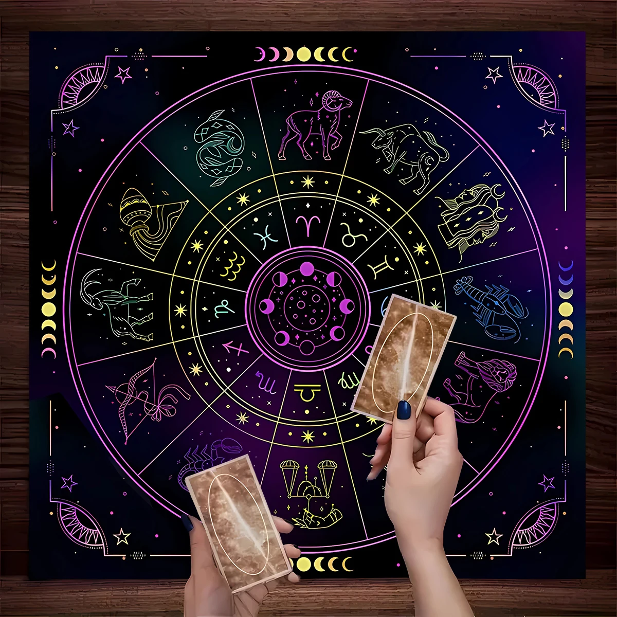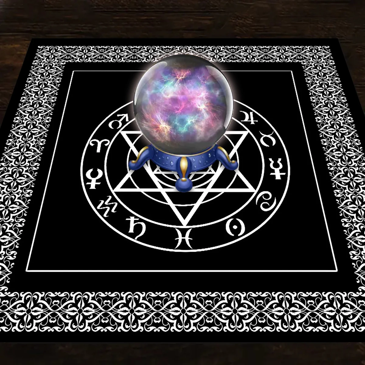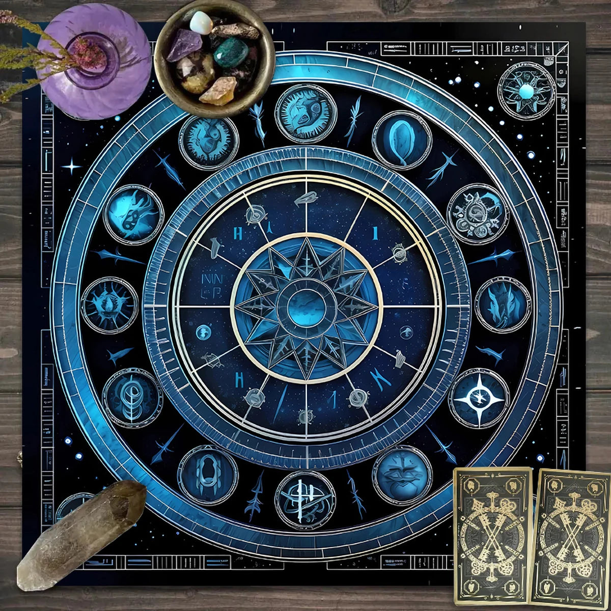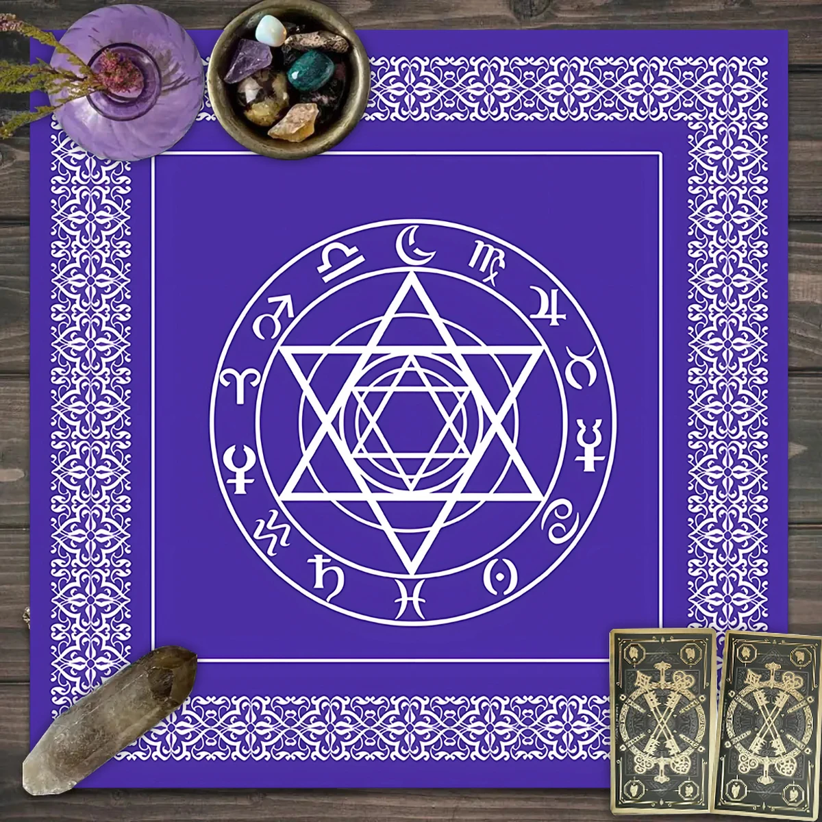 Enhance your spiritual rituals and card readings with this Mysterious Rune Tarot Tablecloth — a mystical altar cloth adorned with astrological and rune symbols, perfect for tarot, oracle, or divination setups.