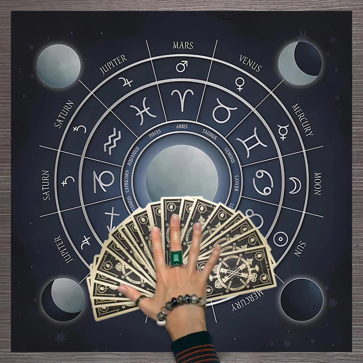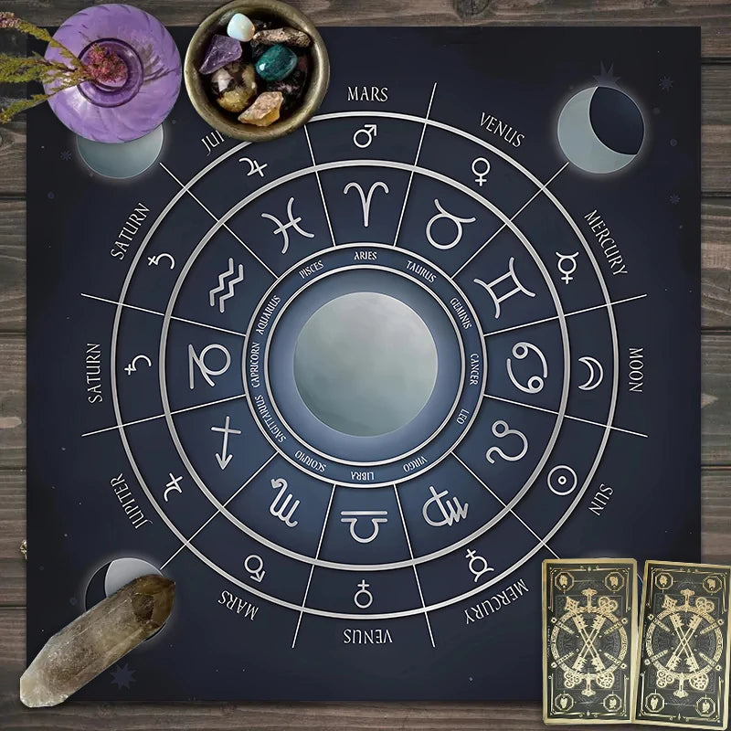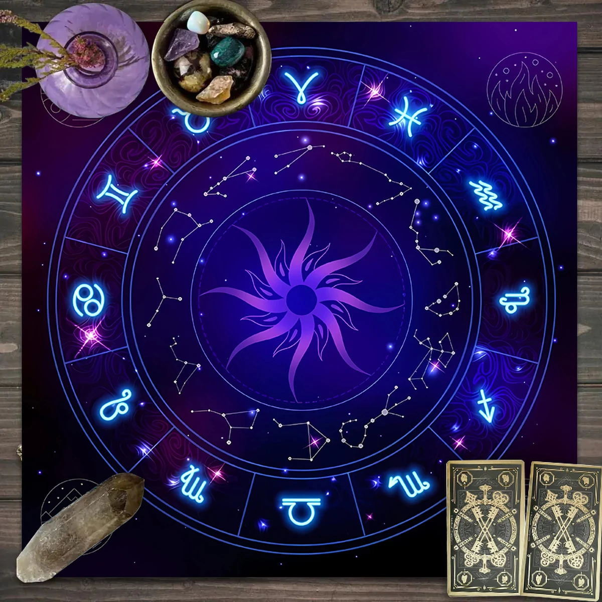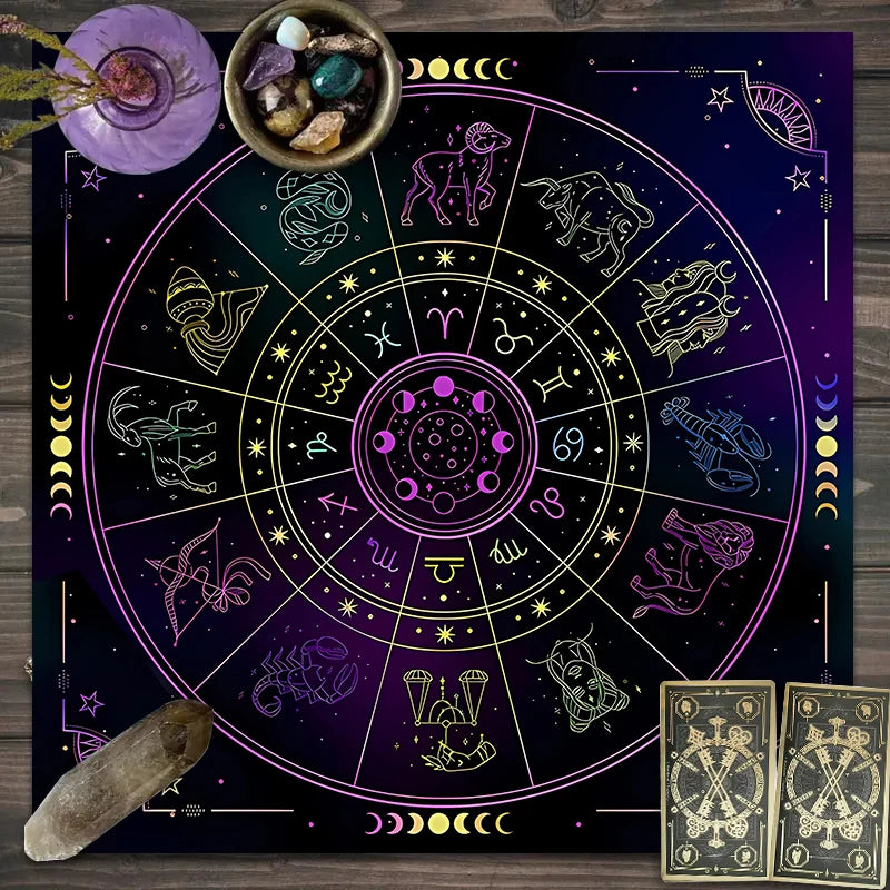 Enhance your spiritual rituals and card readings with this Mysterious Rune Tarot Tablecloth — a mystical altar cloth adorned with astrological and rune symbols, perfect for tarot, oracle, or divination setups.