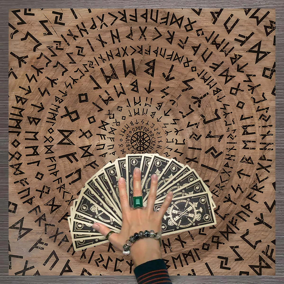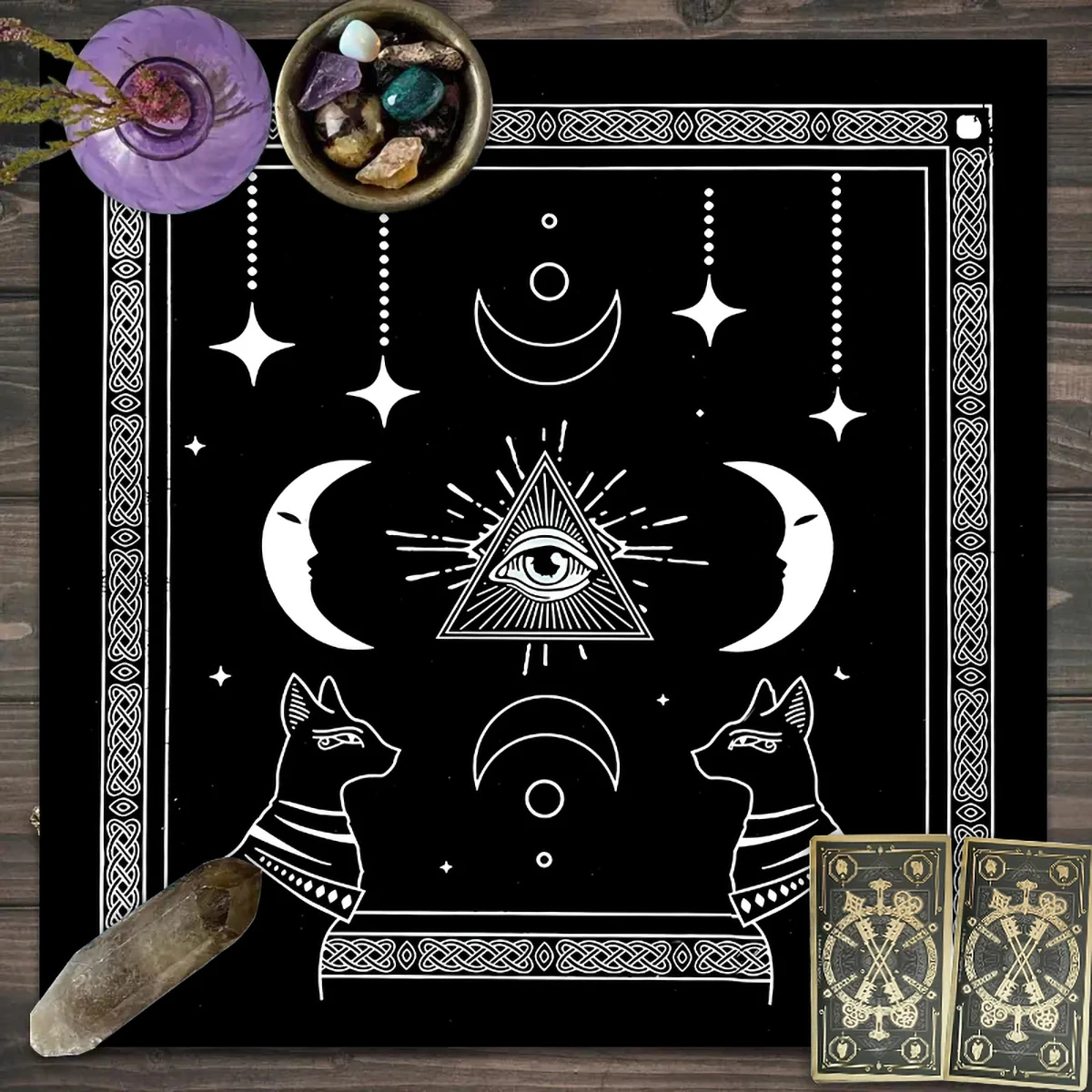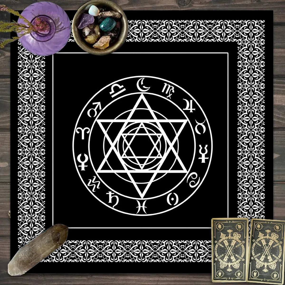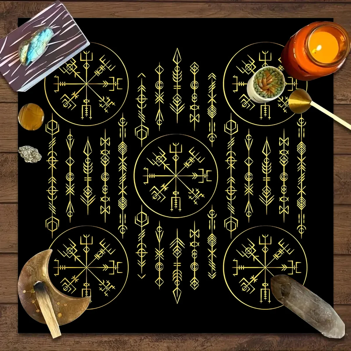 Mysterious Rune Tarot Tablecloth – Witchcraft Altar Cloth for Astrology & Card Readings