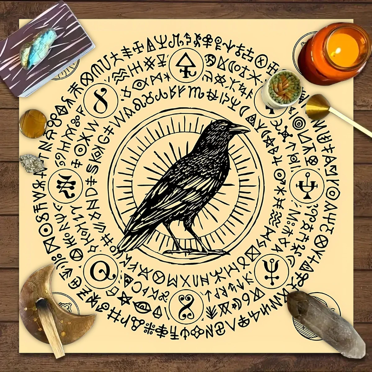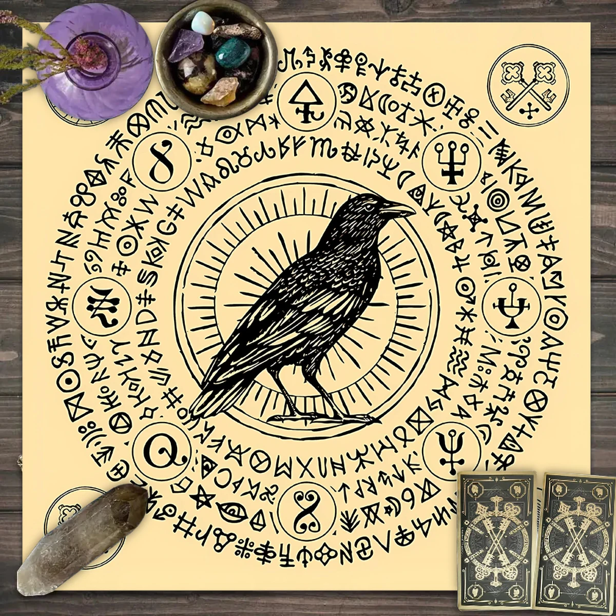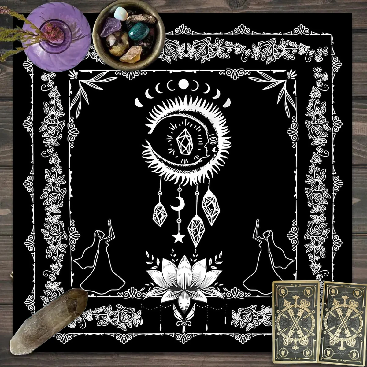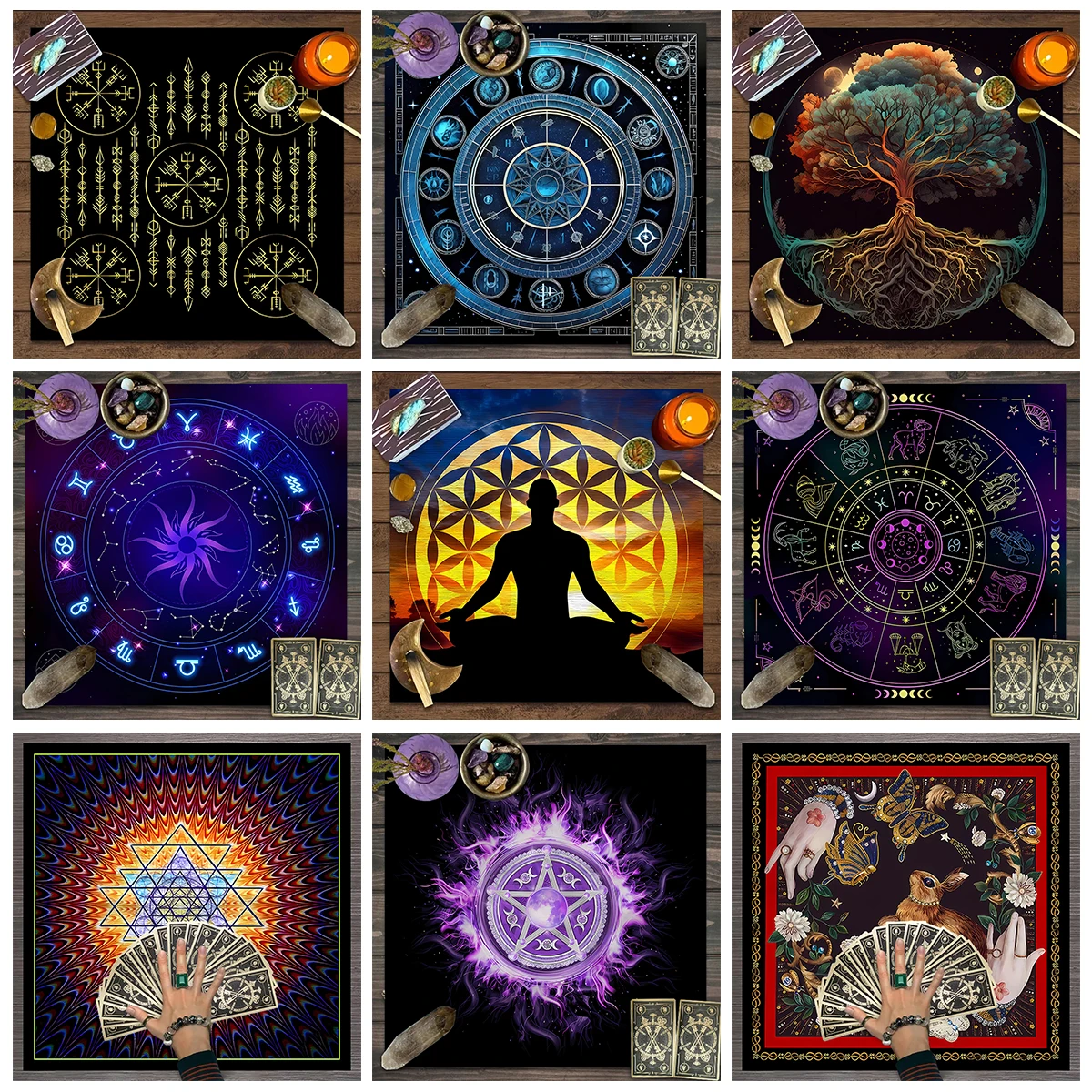 Mysterious Rune Tarot Tablecloth – Witchcraft Altar Cloth for Astrology & Card Readings