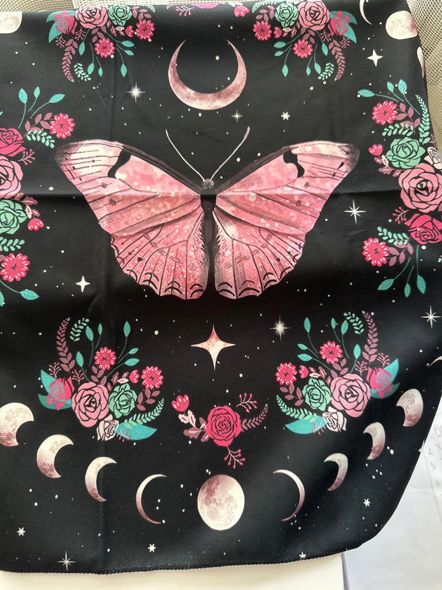 Pink Butterfly Moon Phase Floral Tarot Card Tablecloth – Altar Cloth for Witchcraft & Astrology