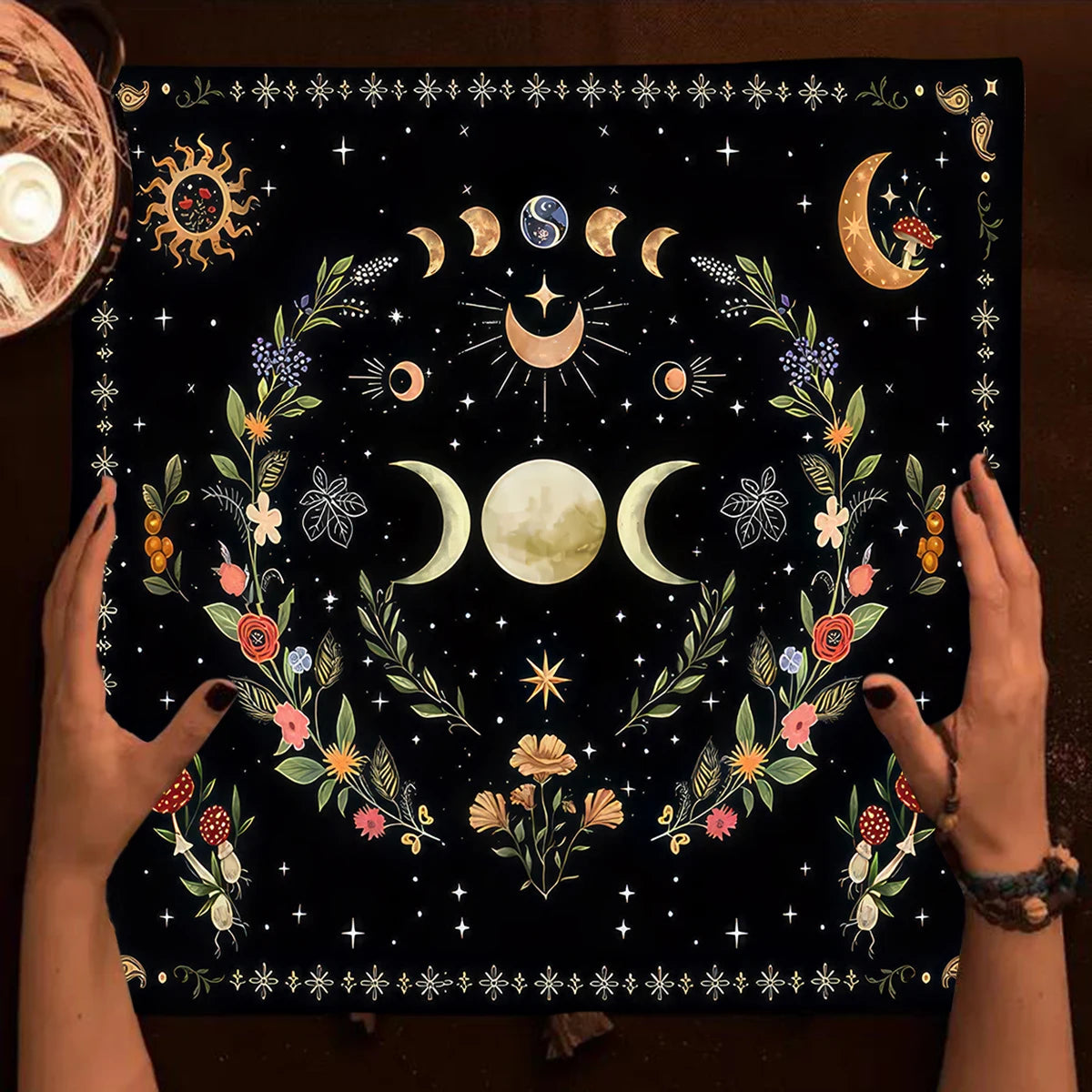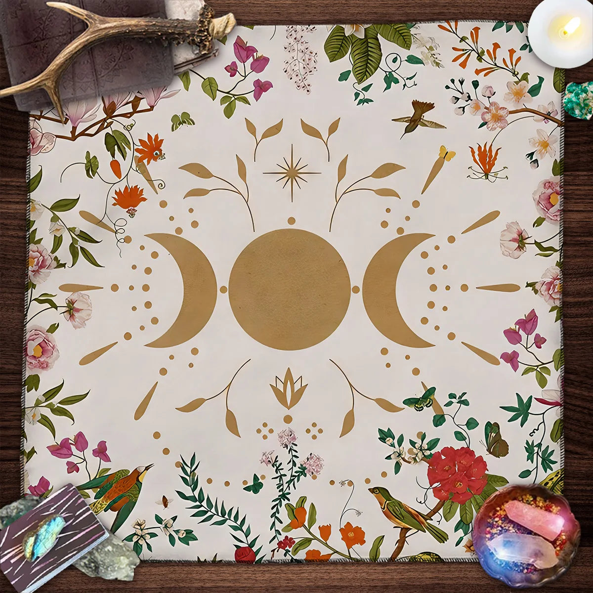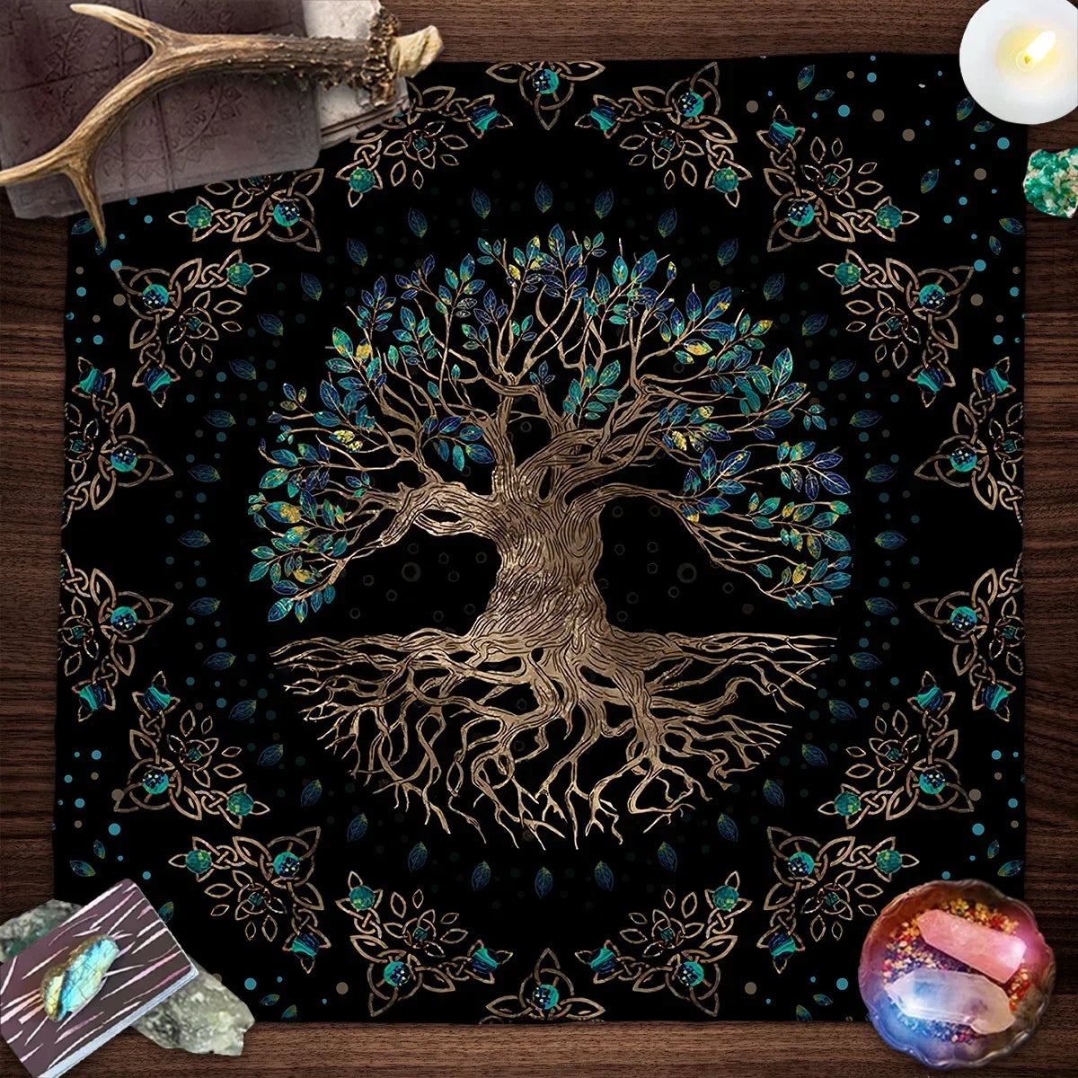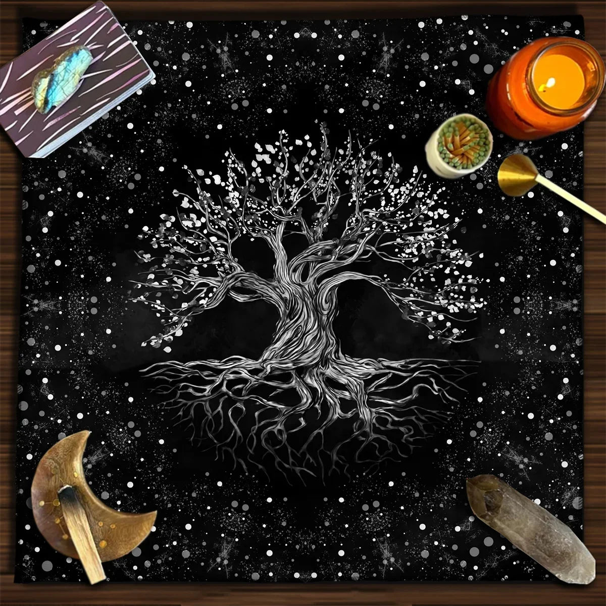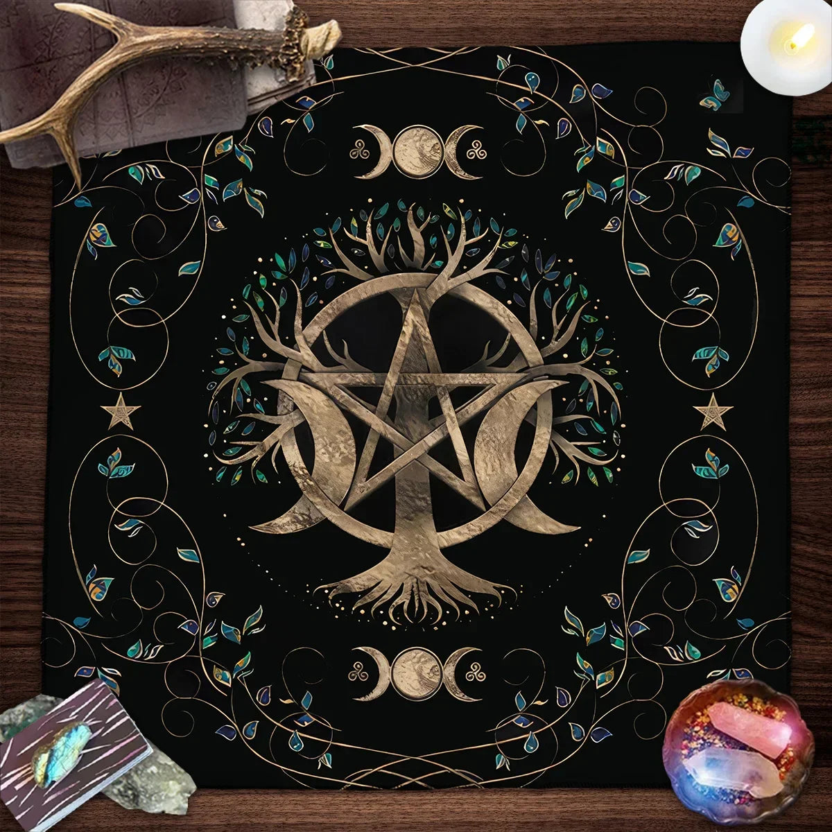 Create a sacred and grounding space with the Tree of Life Tarot Tablecloth — beautifully adorned with moon phases and plant motifs, this cloth is perfect for tarot readings, Wicca rituals, and spiritual altar setups.
