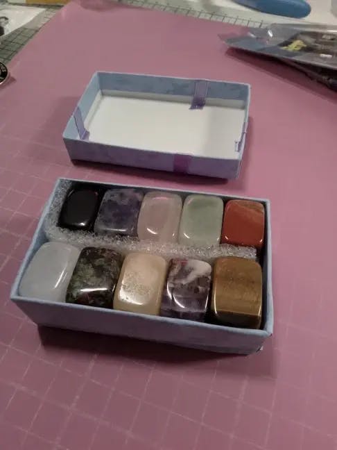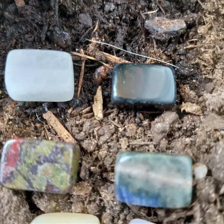 Includes a variety of natural stones such as quartz, rose quartz, amethyst, and mixed rocks