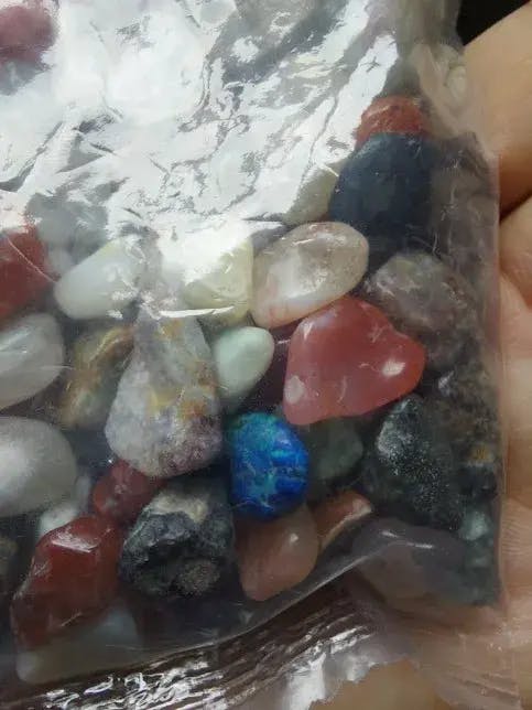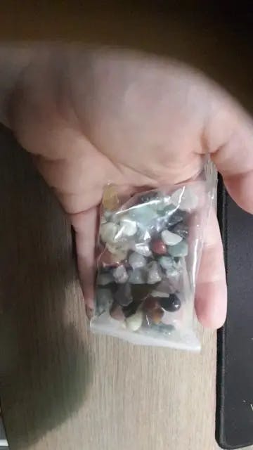 Includes 100g of natural quartz stones in assorted sizes (small to large chips)